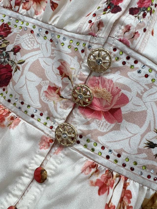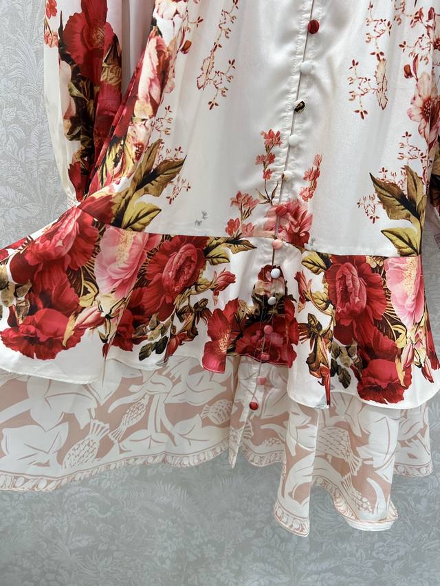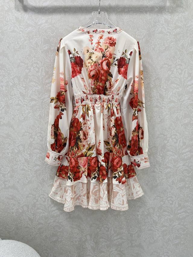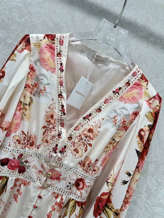 Zimmerman* Zimmerman's new 25th-century rose-print dress features a V-neck, lantern sleeves, and a double-layered hem. Pleats outline the waistline, and rhinestones adorn the collar for a beautiful and elegant look. The fabric is comfortable and breathable, and the oversized hem brings a touch of spring. This is a top choice for vacations. This is a must-have solid color dress in 4 sizes: Smlxl B