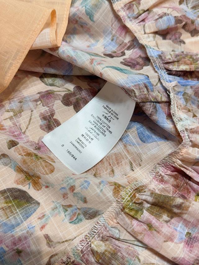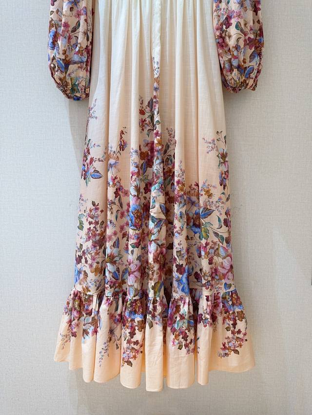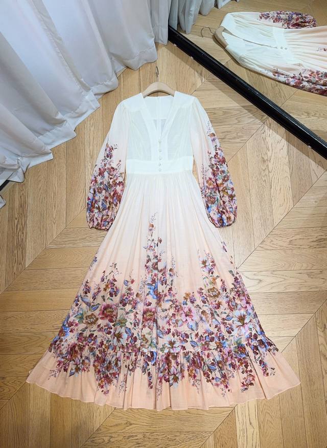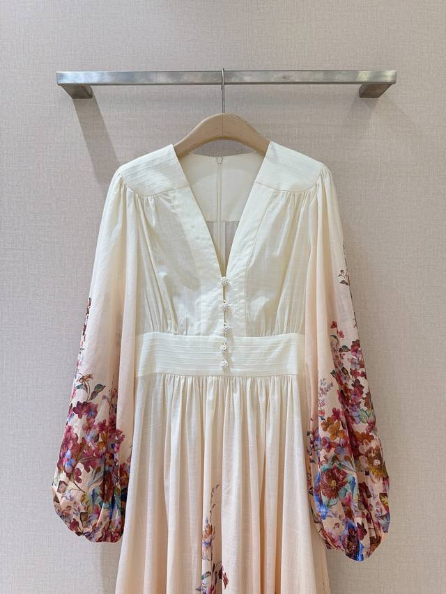 Zimmerm*A*N*N New Arrival! DDD Floral Print Dress, made of cotton fabric, features a V-neck, lantern sleeves with elastic cuffs, a fitted waist, and a full skirt, exuding a gentle and elegant beauty. DDD Sizes: Smlxl, K251013 DDD