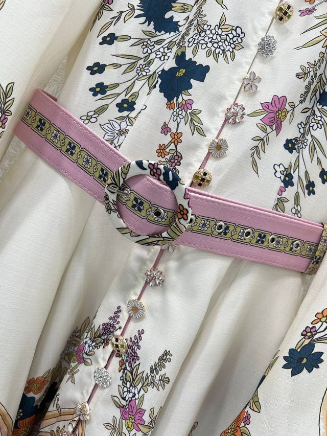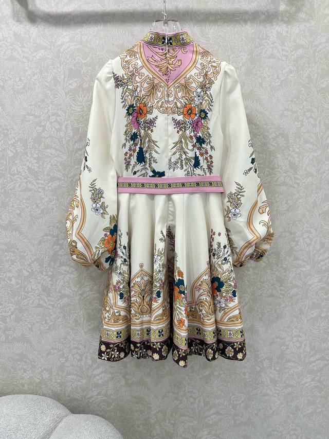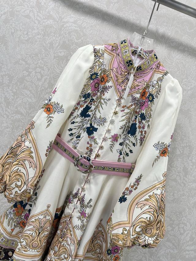 Zimmerman*'s new 25th-century print collection has arrived! A short dress with a small stand-up collar and lantern sleeves. Custom-designed multi-treasure pattern hardware on the front is incredibly eye-catching. The cuffs are tightened to create puff sleeves. Includes a belt in the fabric's color. The skirt has a generous hem. Made with genuine materials, this is a truly exceptional, fairy-like style with meticulous attention to detail, a perfect replica of the original counter model. It's luxurious and stylish, and the fit is perfect for any outfit. Short, one color, four sizes. Smlxlb.