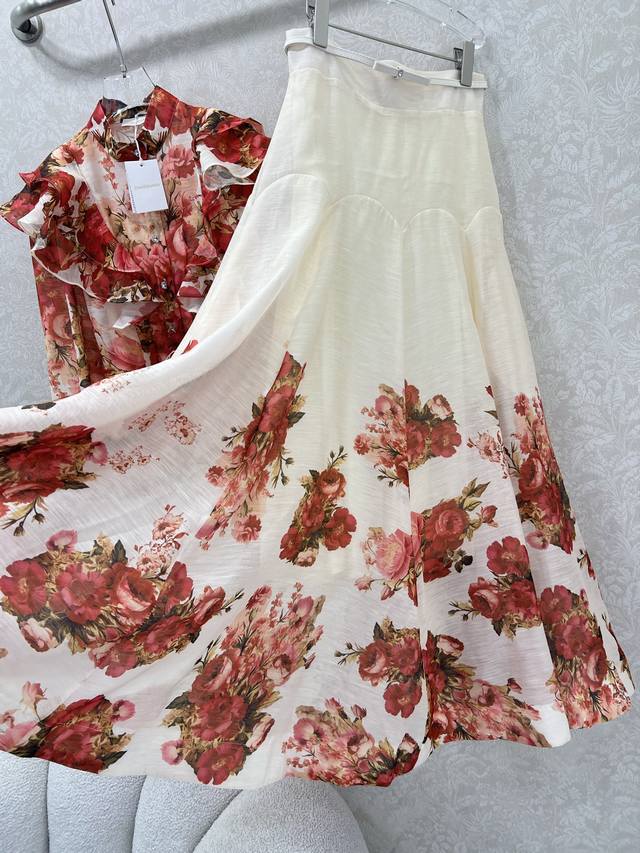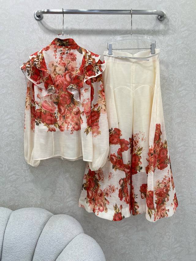 Zimmerman*Zimmerman 2025 New Style Stand Collar Court Lace Print Top + High Waist Extra Large Slender Cake Skirt Set. This set features a luxurious pattern and high-quality finish, showcasing superior craftsmanship and meticulous details. A perfect replica of the boutique style, exuding a high-end feel. The cut is superb and easy to match for a sophisticated look. Available in 2 colors and 4 sizes: Smlxlb