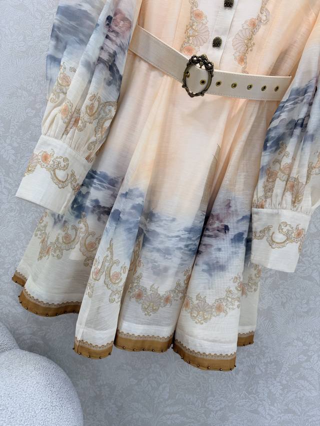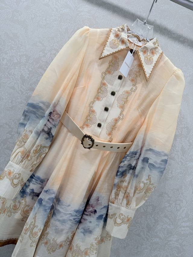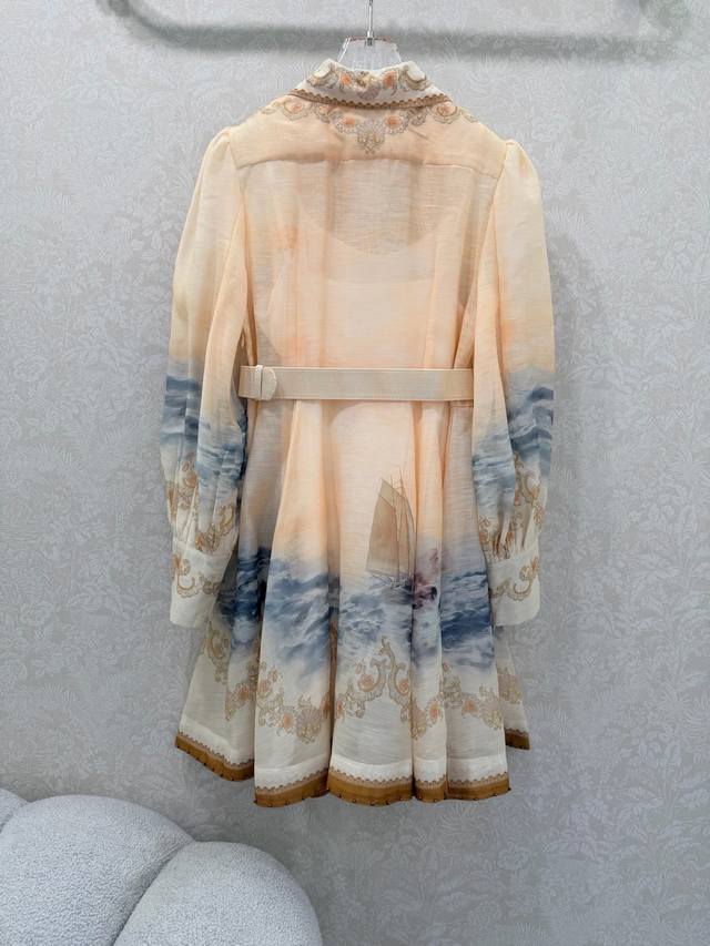 Zimmerman*Zimmerman 2026 Early Spring New Nautical Series Positioned as a Floral Sailboat Print Dress with a Stunning Lapel and Long Sleeves. A gorgeous dress is here! Single-breasted front, cuffs that cinch into puff sleeves, and a custom-made fabric belt with custom shell and brass hardware. Extra-large hem, high-quality materials, an incredibly fairy-like style with meticulous details, perfectly replicating the boutique version with a high-end feel. The cut is super flattering and easy to style. Available in single color, sizes S, M, L, X, B, DDD
