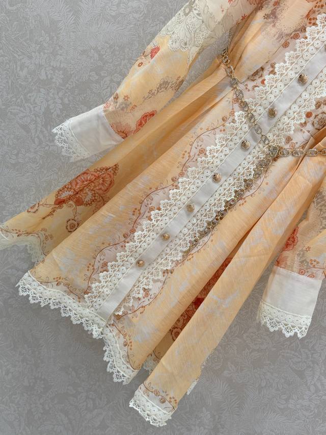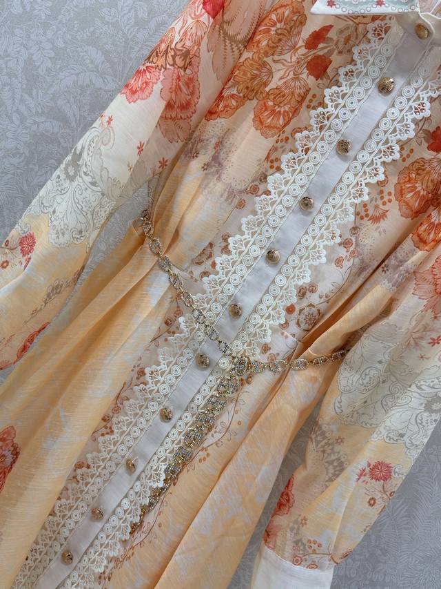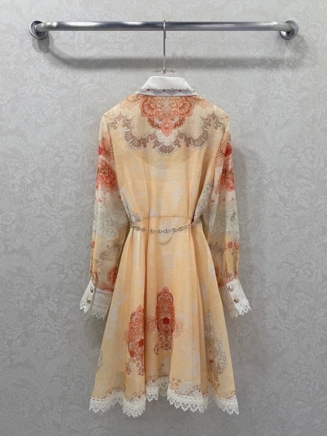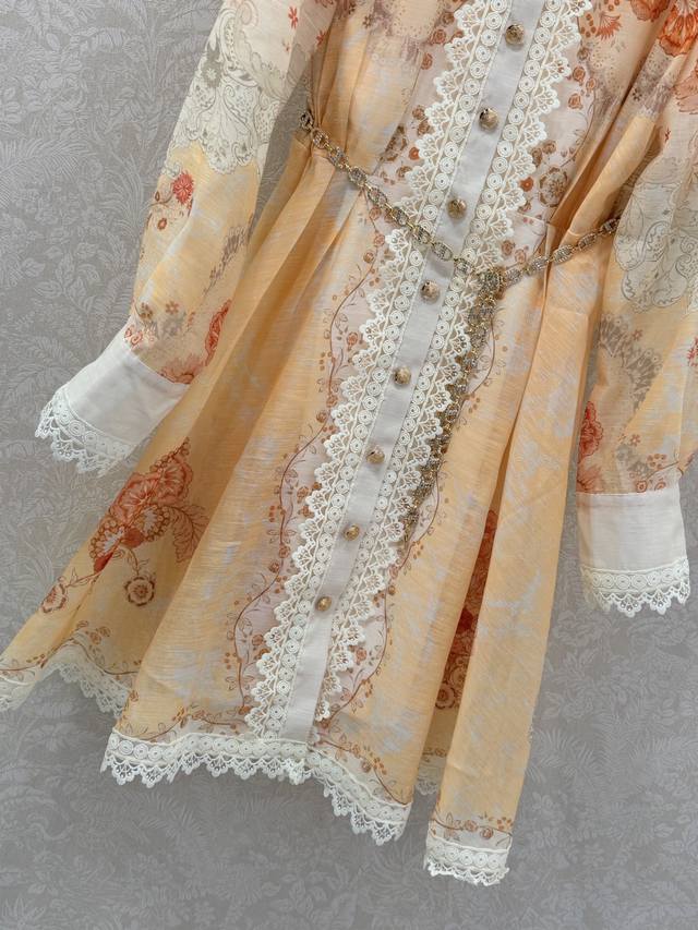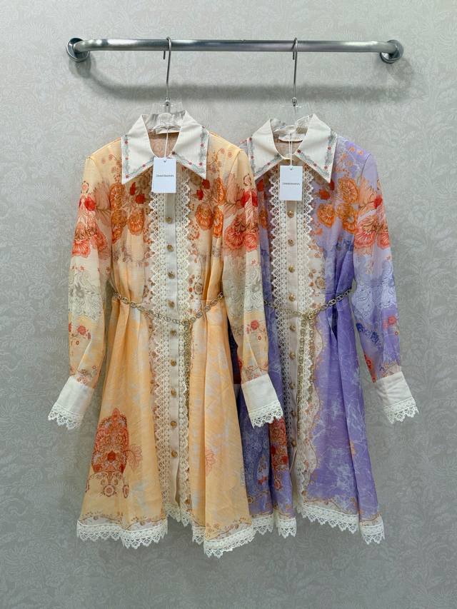 Zimmerman*Zimmerman 2026 Early Spring New Positioning Floral Collar Lace Trim Long Sleeve Dress. Super beautiful color scheme, lantern sleeve design, single-breasted custom hardware buckle design on the front, cuffs tighten into puff sleeves. Comes with exquisite chain waist chain. Slim waist, extra-large skirt. High-quality materials, brand letter print, absolutely ethereal fairy style. Heavy-duty details, perfectly replicating the boutique style, full of high-end feel. Perfect fit, easy to match and exudes elegance. 3 colors, 4 sizes: Smlxlb DDD