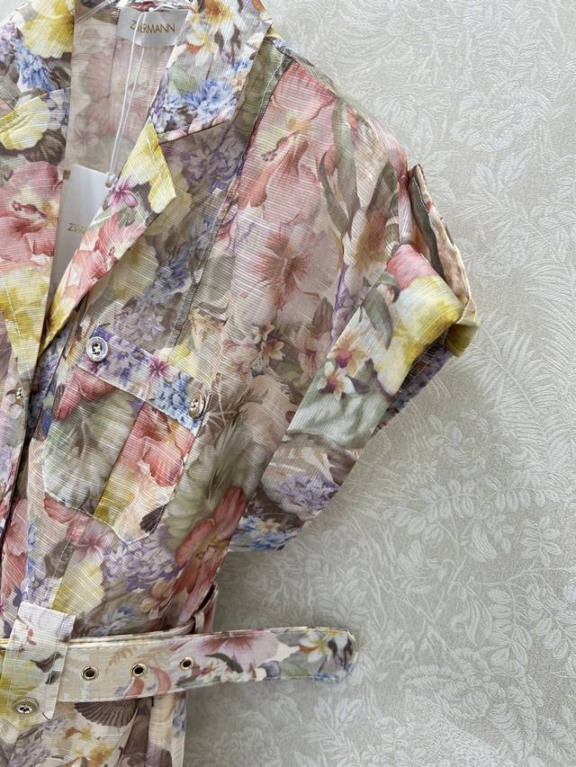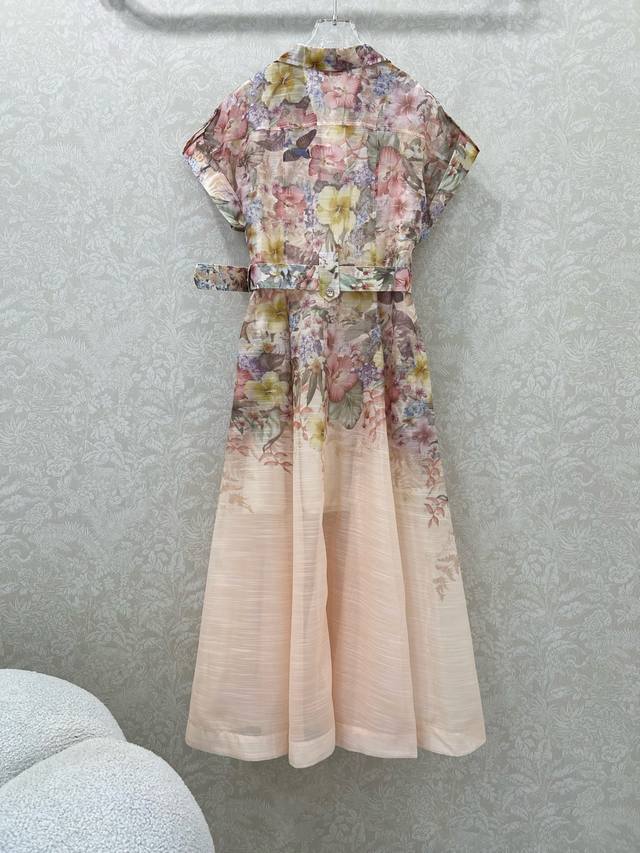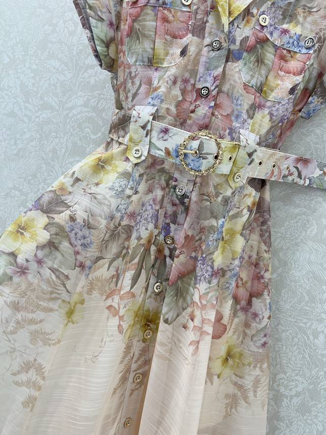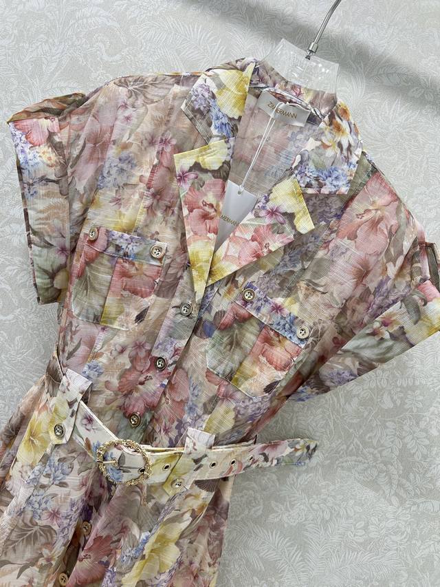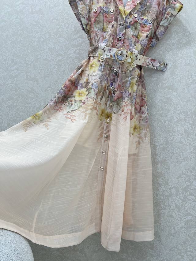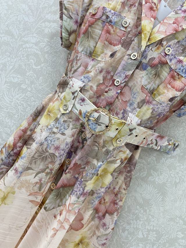Zimmerman*Zimmerman 25 new style lapel hem long dress with single-breasted design, printed skirt, sweet and romantic encounter in the hot summer, lapel design reveals elegant neck line, chest pocket with custom belt in the same color, large skirt, sincere materials, super fairy style. 3 colors, 4 sizes Smlxlb.