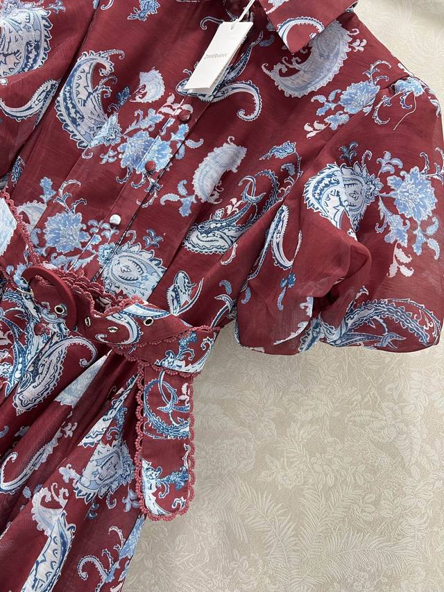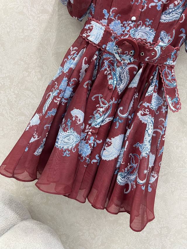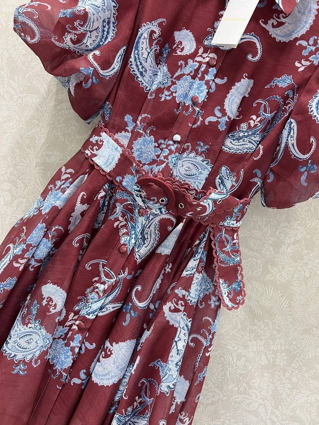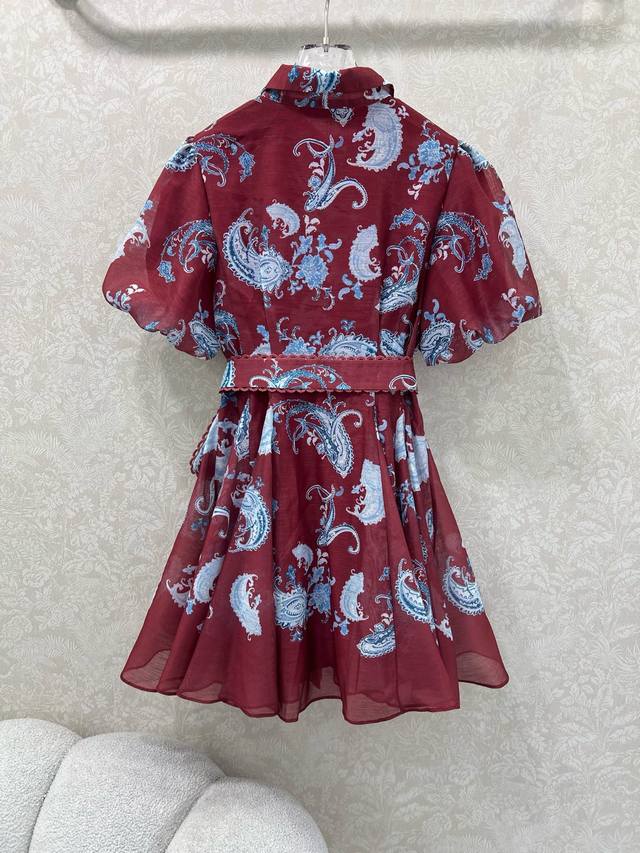 Zimmerman*Zimmerman's new 2025 tulip-sleeved, fitted waist dress is made of linen fabric. It features a turn-down collar, single-breasted button design (covered with fabric buttons), princess puff sleeves, a distinctive dragon flower print throughout, and a super-wide, loose skirt that exudes a vibrant and fashionable feel. Available in solid color, sizes S, M, L, B, DDD