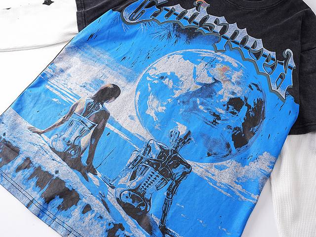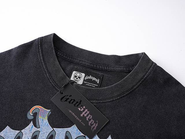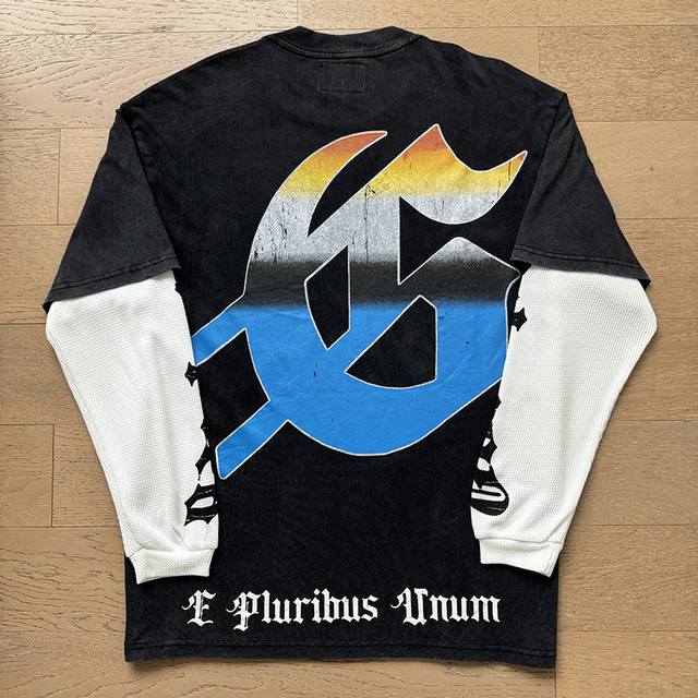 Real shot Godspeed American Street Retro Washed Distressed Fake Two-piece Cotton Long T
