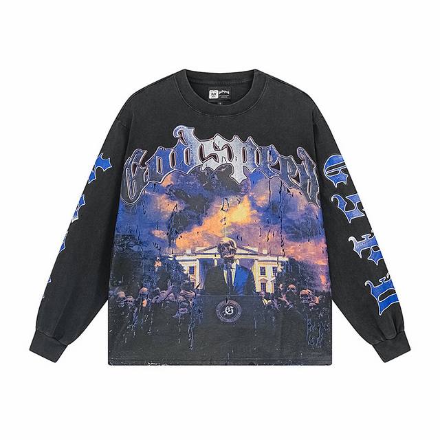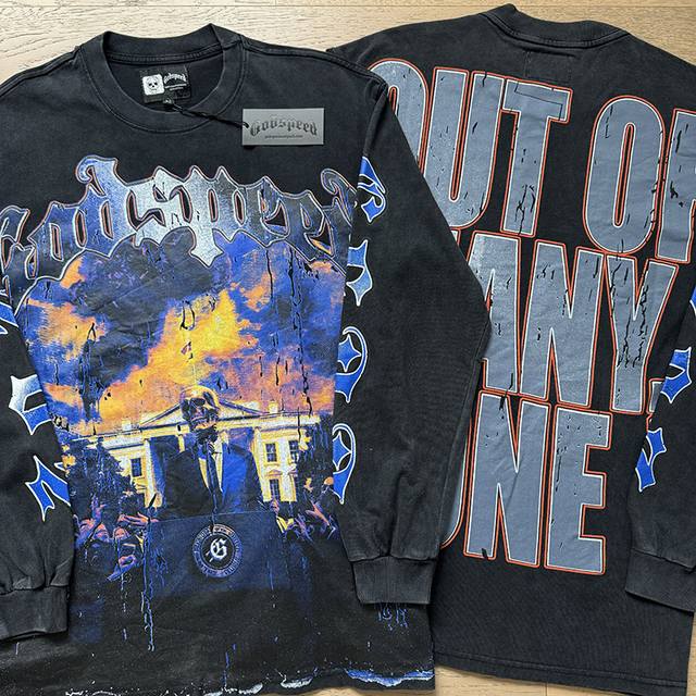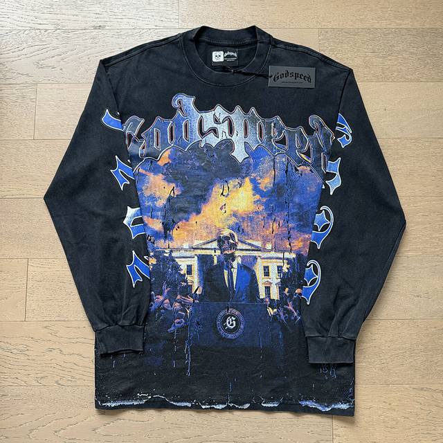 Real shot of Godspeed American trend street retro washed distressed cotton long T