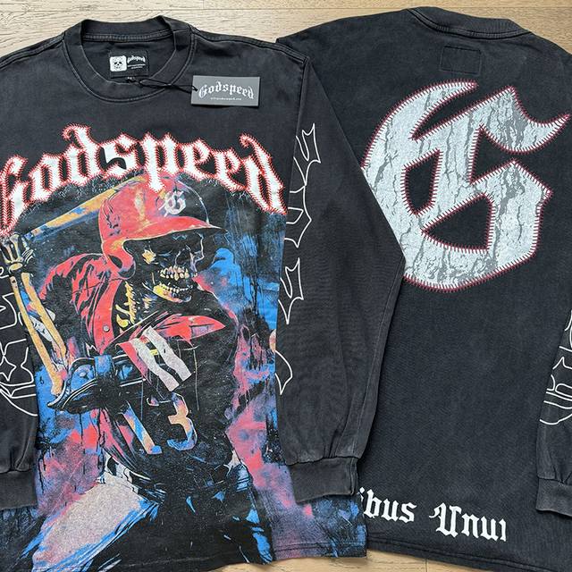 Real shot Godspeed American Street Retro Washed Distressed Cotton Long T