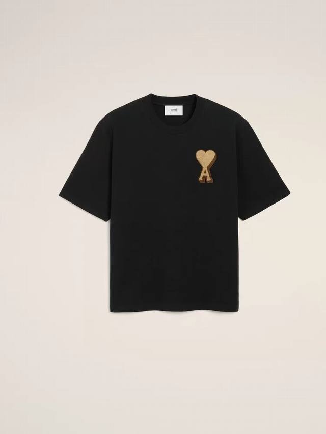 1238# Ami paris 25 new fall/winter arrivals: classic gold Adc towel embroidered heart short-sleeved T-shirt. Custom-made 230g double-yarn pure cotton fabric with 280g ribbing. New main wash. Scan the QR code. Unisex style. Color: Black. Sizes: S-Xl