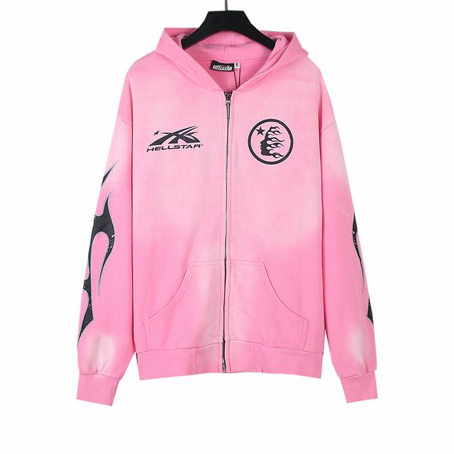 Real shot of Hellstar Hellstar washed distressed terry high street hooded sweatshirt jacket