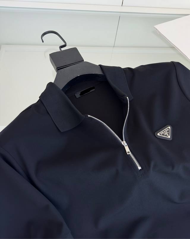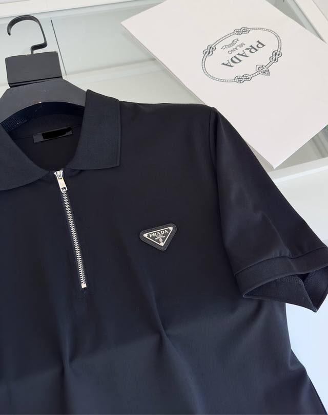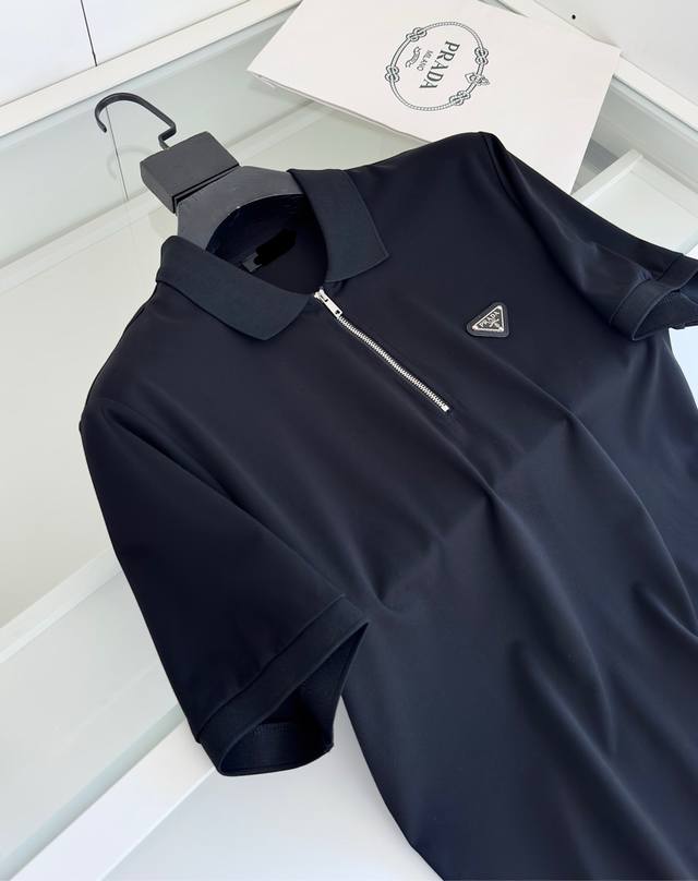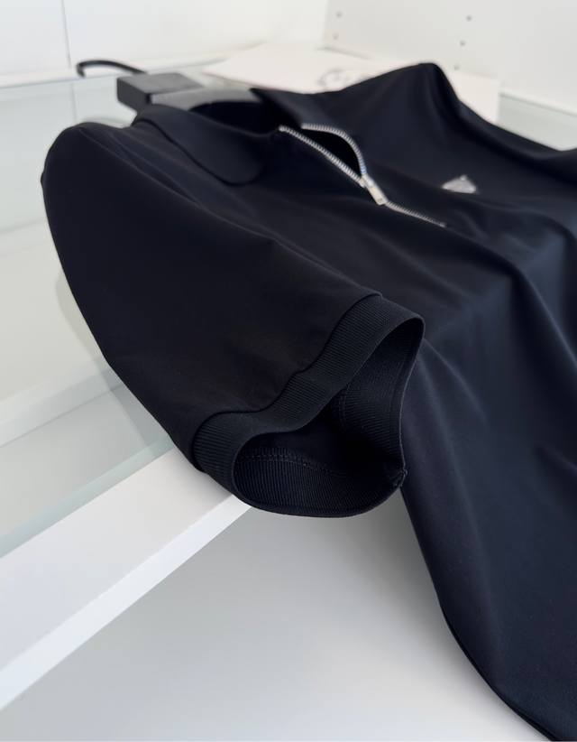2025 Available now!! Zippered placket, turn-down collar, short-sleeved polo shirt. The zipper placket, combined with the triangular logo on the chest, features a square cut and clean lines, presenting a classic design with a fresh sporty style. The knitted hem and slightly loose fit offer good body-hugging comfort. The fabric is made of fine piqu