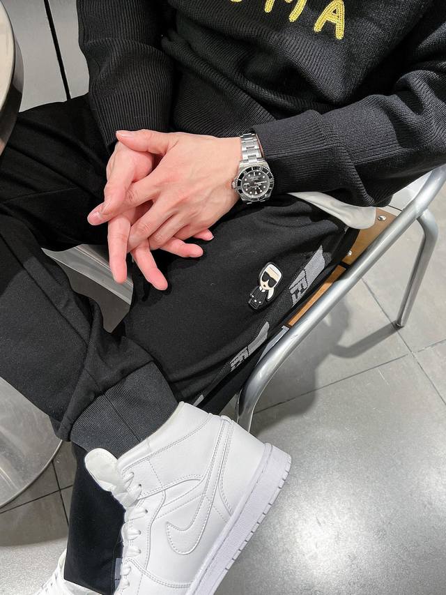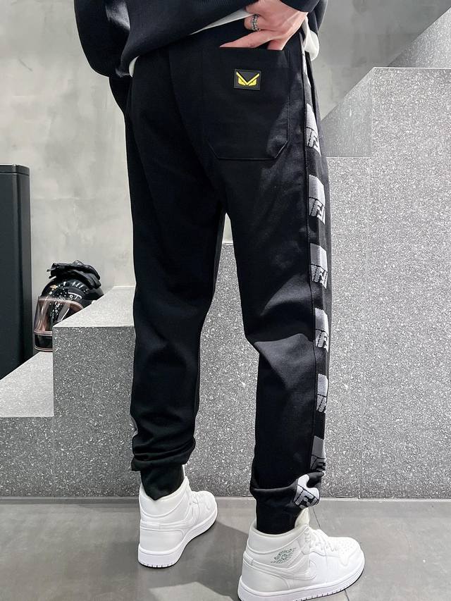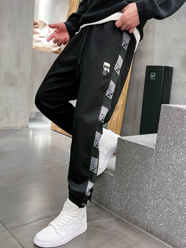 Y top black imported embroidery fusion design autumn and winter casual trousers, exquisite tailoring and exclusive creation, classic little monster patchwork ribbon casual trousers, trendy men's fashion, whether it is upper body comfort or are unparalleled, it can be said to be a must-have for autumn and winter