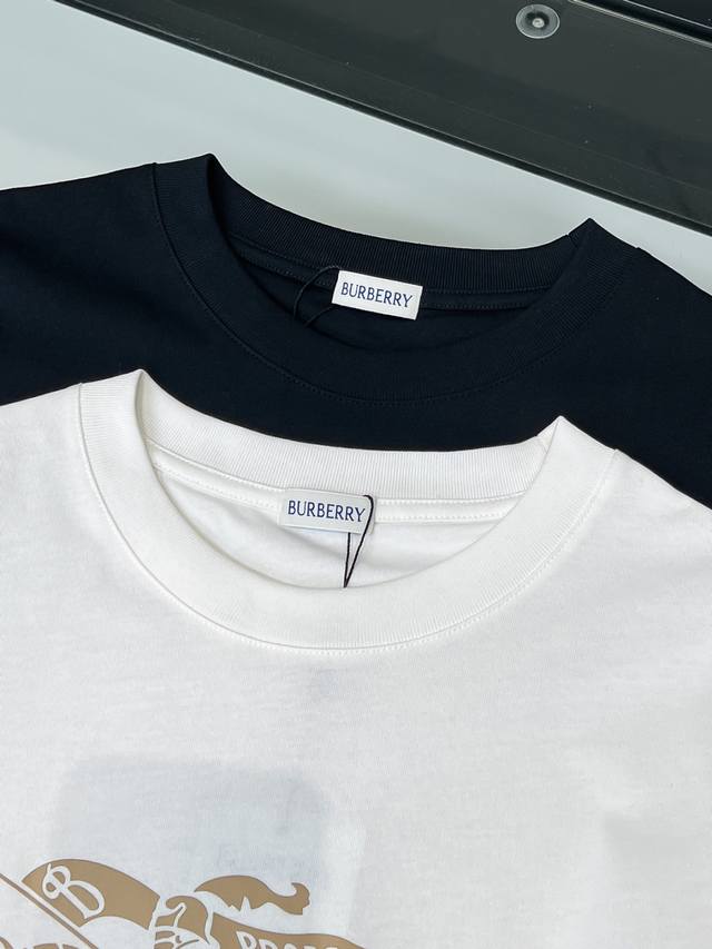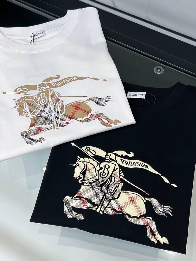 2026Ss New Arrival Burbe Unisex Short-Sleeve T-Shirt with Classic Horse Pattern on the Chest! Custom Fabric. Effortlessly versatile, extremely high-end, perfectly blending fashion and style. A top-tier fashionable piece that's perfect for wearing alone! The overall look is effortlessly chic! An extremely classic and versatile short-sleeve T-shirt, available in black and white. Sizes: S-2XL. High-quality version with a turtle-back design.