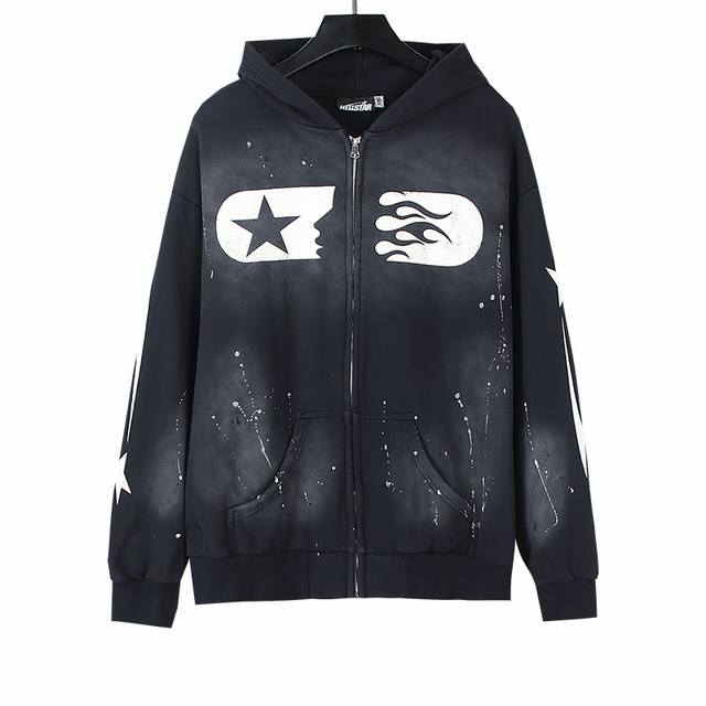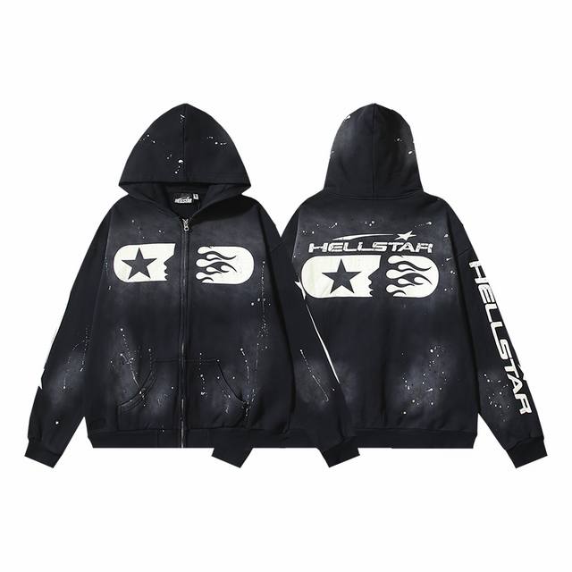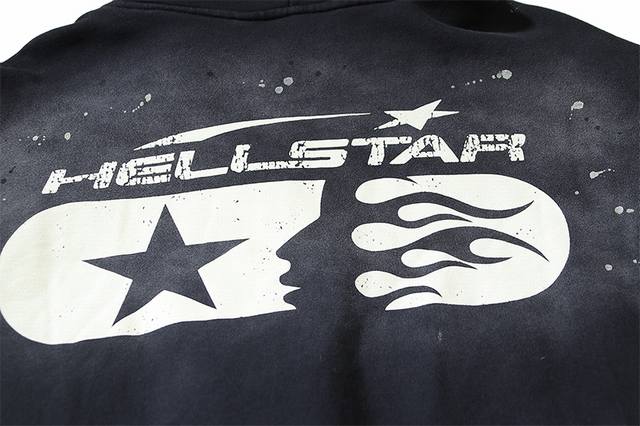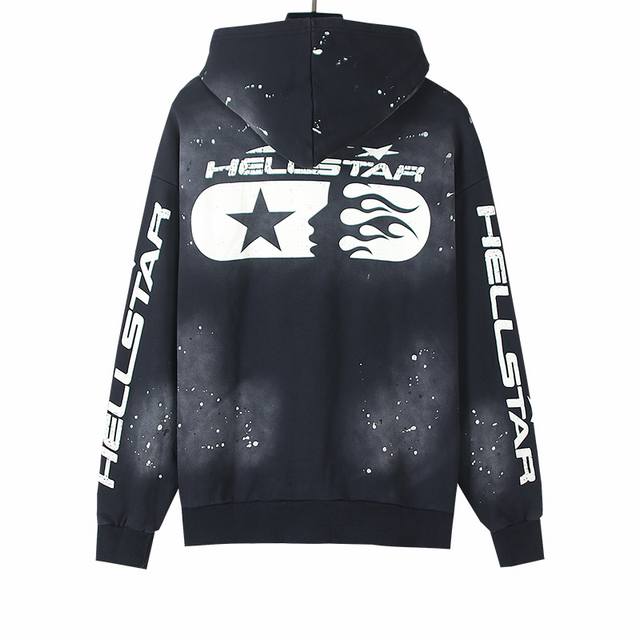 2035# Washed Black Real shot Hellstar Hellstar ink-splashed washed distressed te