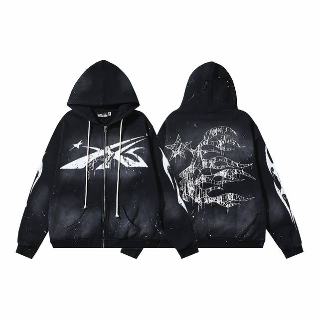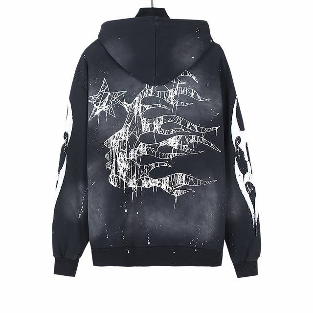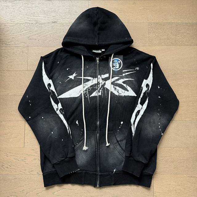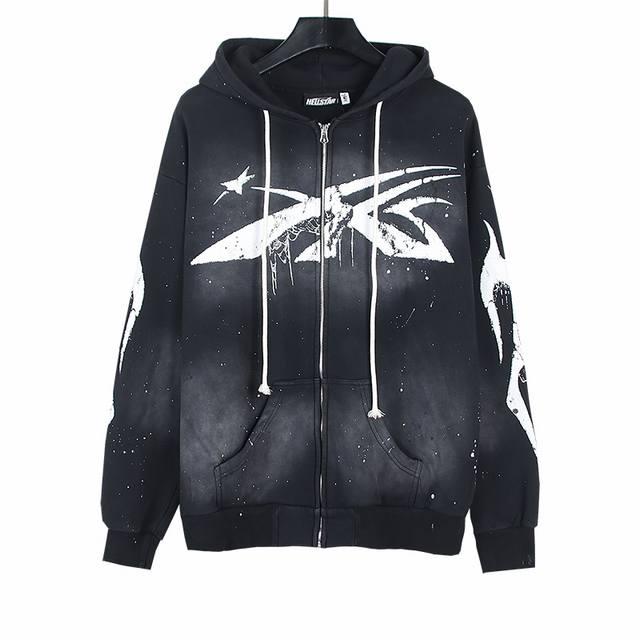 2037# Washed Black Real shot Hellstar Hellstar ink-splashed washed distressed te