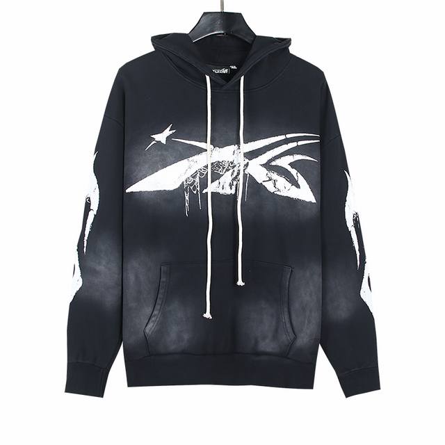 Real shot Hellstar Hellstar washed distressed terry high street retro hooded sweatshirt