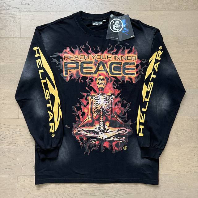 Real shot of Hellstar Hell Star American trendy distressed washed pure cotton loose bottoming long-sleeved T-shirt Long T