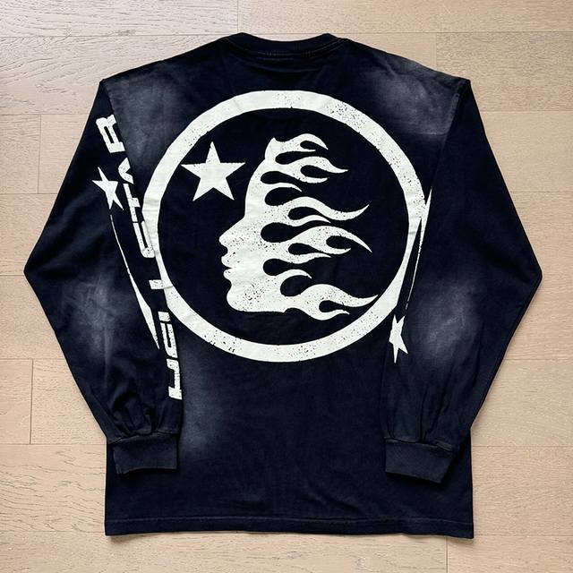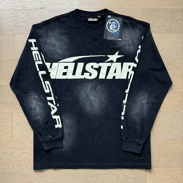 689# Washed black Real shot Hellstar Hell Star Beautiful trendy old washed cotto