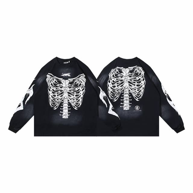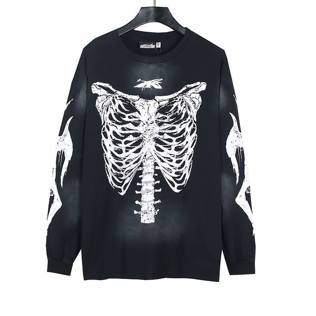 Real shot Hellstar Hell Star American trendy distressed washed cotton loose bottoming long-sleeved T-shirt Long T