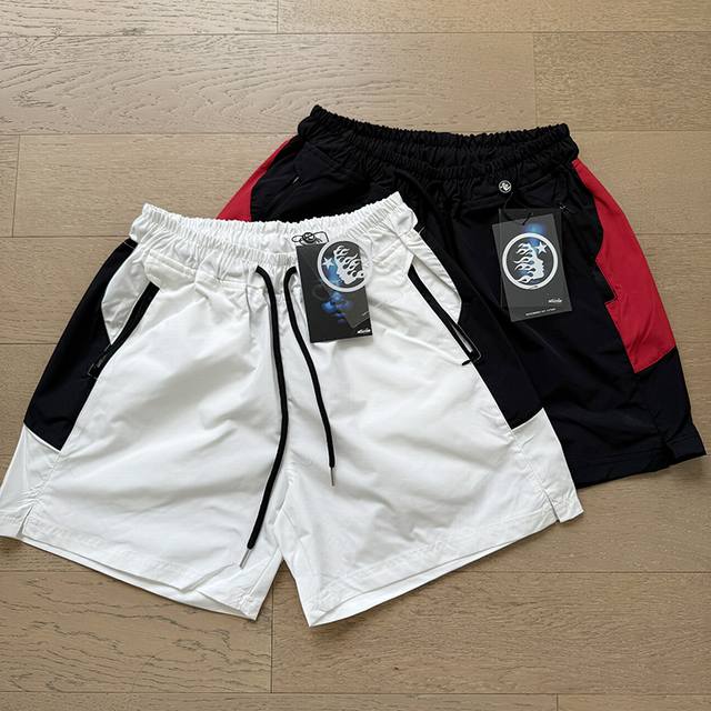 765# Real shot Hellstar Hell Star casual sports beach shorts Color: Black White