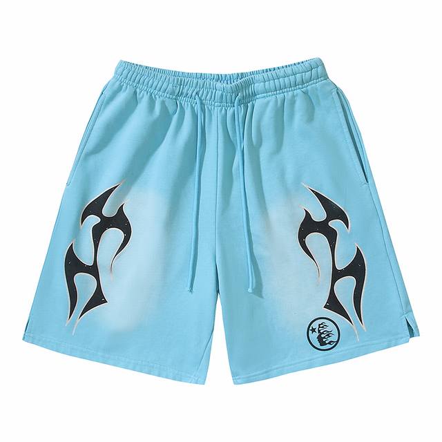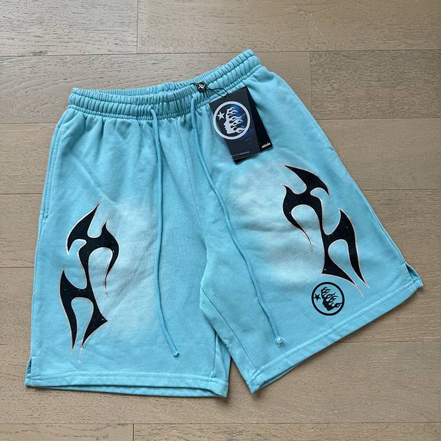 Real shot Hellstar Hell Star washed distressed casual shorts