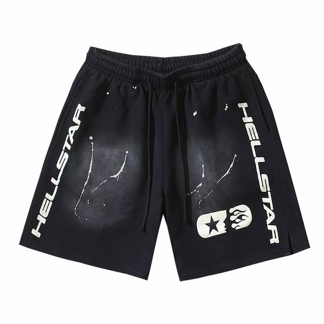773# Washed Black Real shot Hellstar Hellstar washed ink distressed casual short