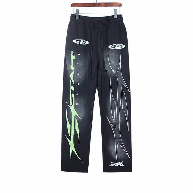 Real shot Hellstar Hellstar washed distressed terry high street retro sweatpants fabric 380g pure cotton terry cloth Color: Washed Black Size: SML Xl