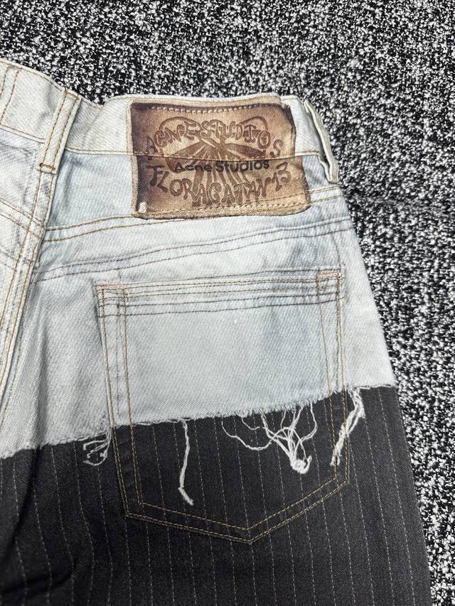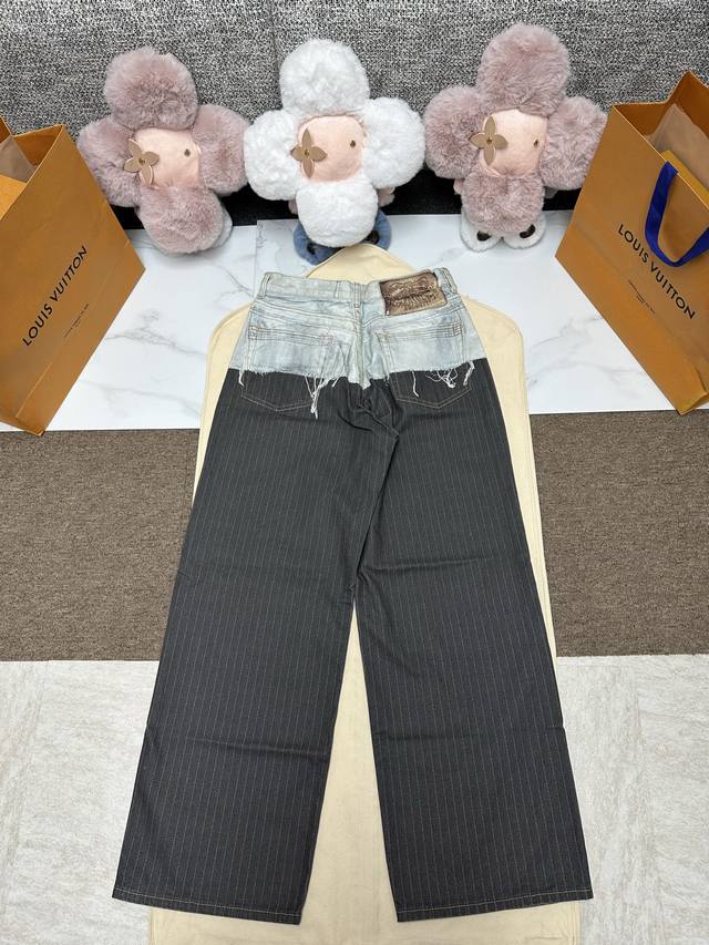 Ac These new 25-size jeans feature a patchwork striped design, are made of soft denim, and have a relaxed fit. The 1981 jeans have a loose, low-to-mid-rise cut, with super loose legs and a long length. Sizes: 42, 44, 46, 48, 50.