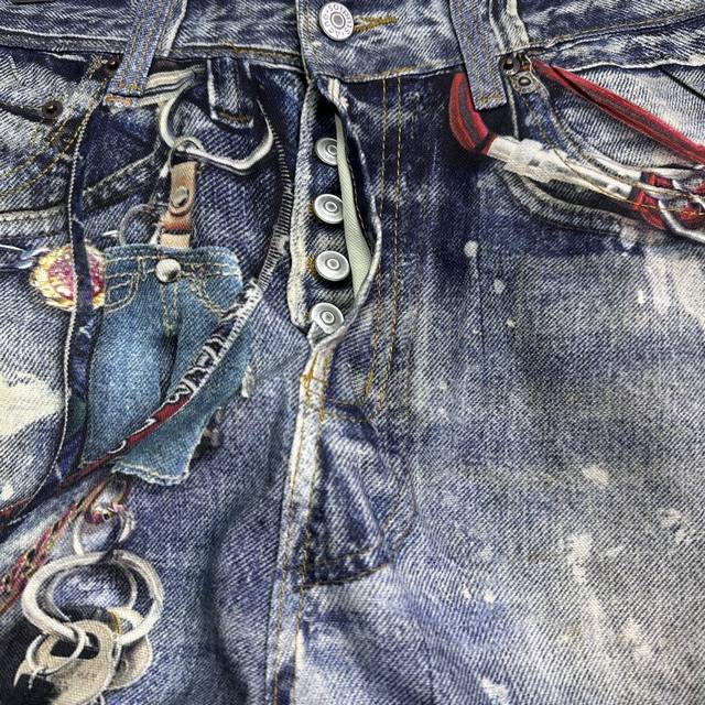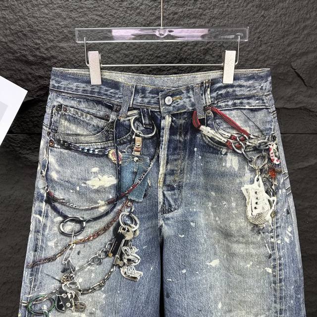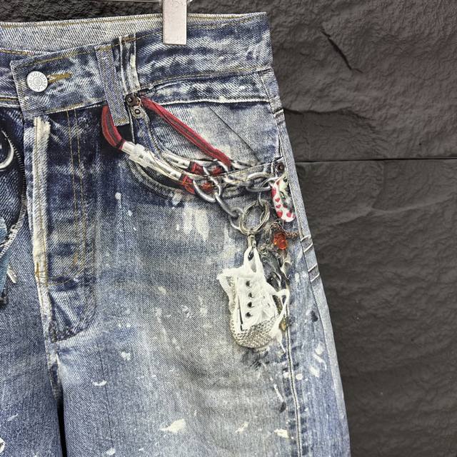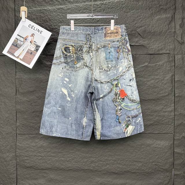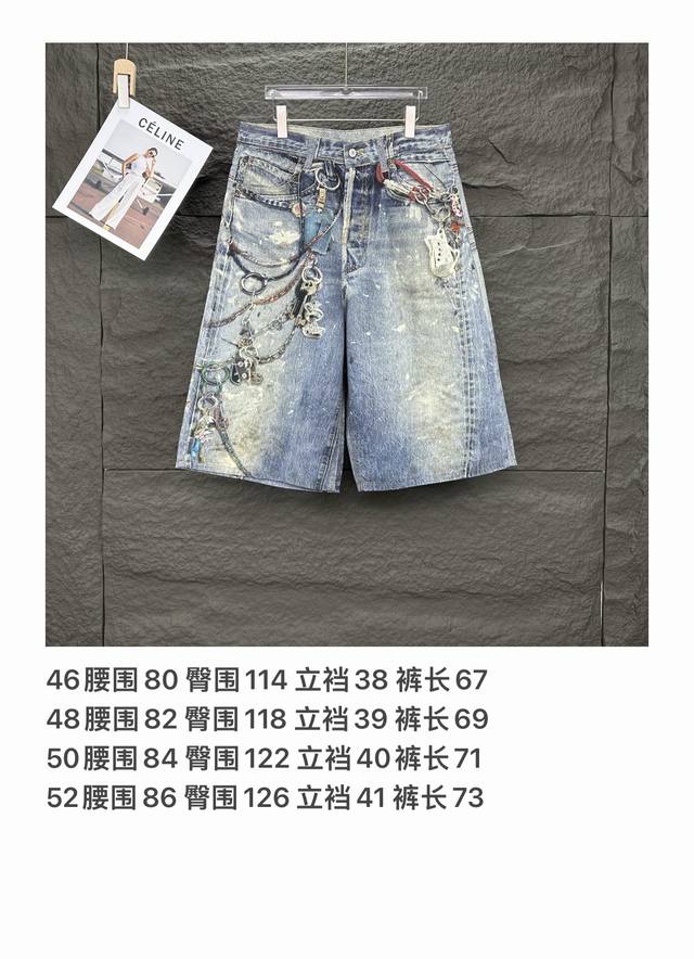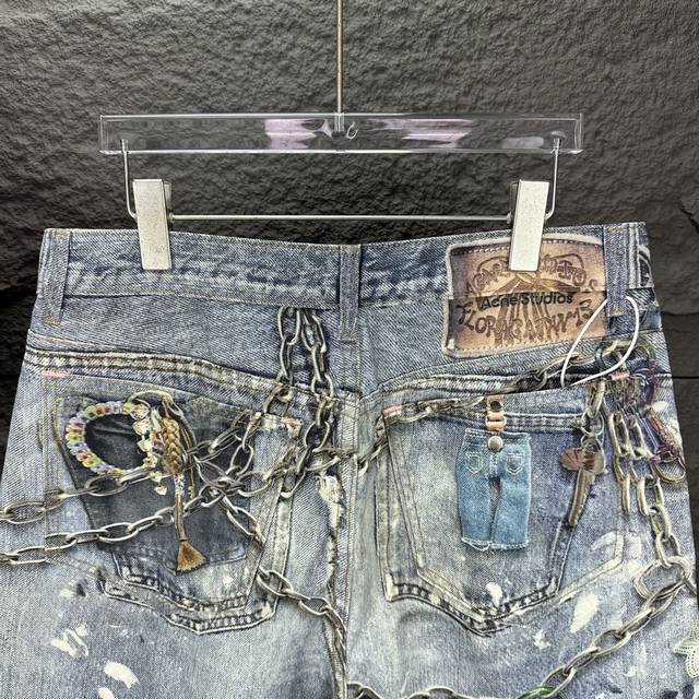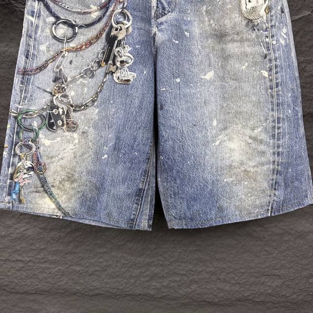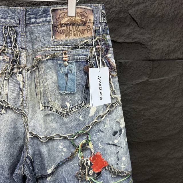 Acne Studios 2025 new 3D digital graffiti chain couple's washed loose denim shorts