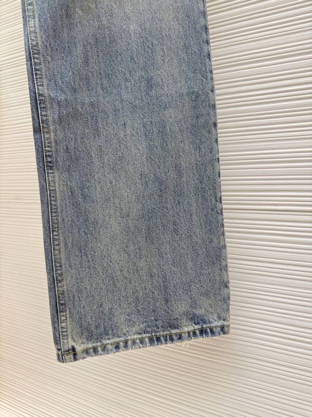 Description: Featuring a mid-rise, wide-leg silhouette and full-length length, these jeans offer a relaxed, casual look. Made from a 60% cotton and 40% lyocell blend of raw denim, they feature a light blue wash, revealing natural coloration and unique painted markings. Five pockets and a button placket create a practical yet stylish design. The organic cotton in the fabric ensures comfort and environmental friendliness, while cowhide patches add a touch of sophistication. These jeans not only embody the brand's high-quality standards in design but also in materials and craftsmanship. The overall lines are straight and delicate, the fabric is comfortable and soft, the color is consistent and there is no color difference. It can be matched with the same style to create a fashionable look, suitable for various occasions, customized accessories, three labels are complete, and it is the same style for men and women!