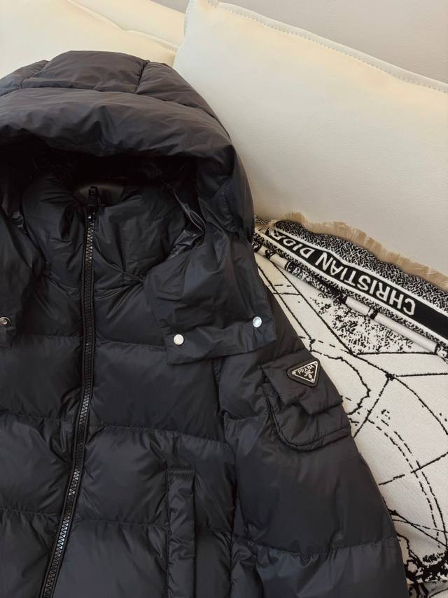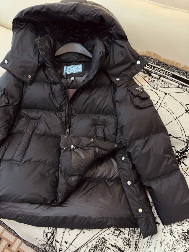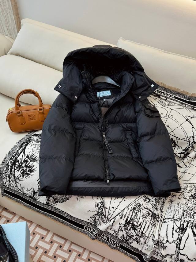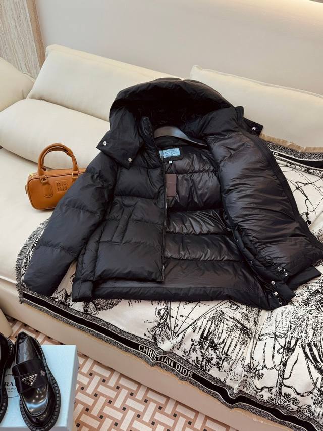 / Ah605# New down jacket Prada short sleeve bag 90% white goose down jacket black