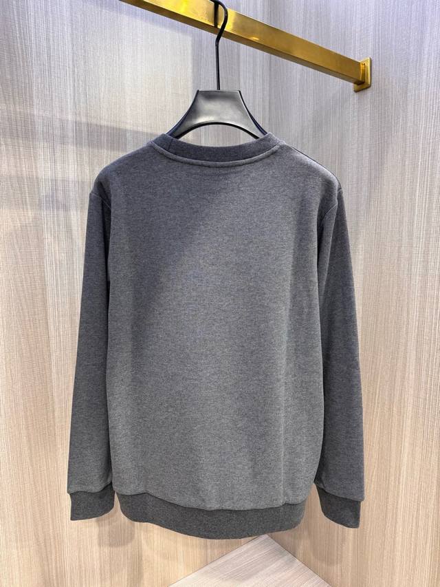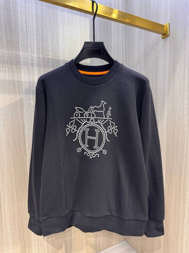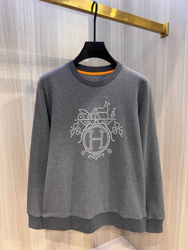 Aima's latest Autumn/Winter 2025 men's crewneck sweatshirt with horse-drawn "H" embroidery. This classic pullover style features the iconic horse-drawn "H" pattern on the chest. Utilizing high-end, 100,000-stitch 3D embroidery, each stitch is meticulously crafted, a level of detail that requires a magnifying glass to truly appreciate. The sweatshirt boasts a rich, three-dimensional feel, a refined aesthetic, and a distinctly branded identity. The slightly loose fit is versatile, creating a stylish and flattering look. The quality and craftsmanship are impeccable. It can be worn alone or layered with a variety of outerwear or down jackets, creating a stylish look.