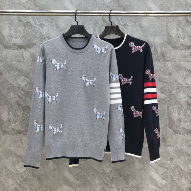 All over jacquard puppy round neck sweater Size: 1-4 Color: gray, blue