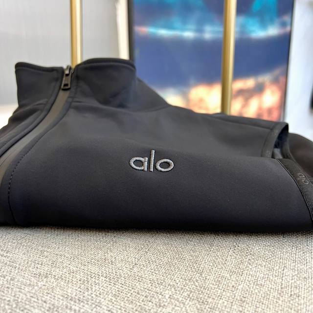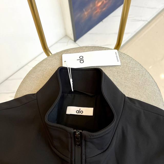 Iconic Identity: A light-colored Alo logo is embroidered on the left chest, announcing the brand's genes with subtle details.