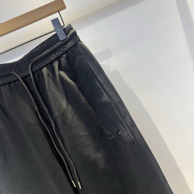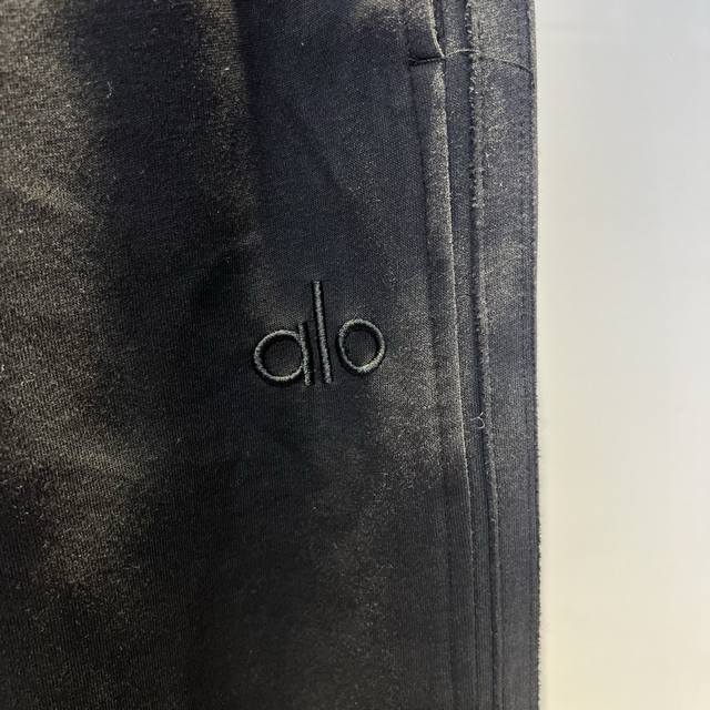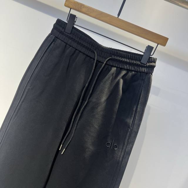 Alo 2025 Early Fall new runway trousers. This year's latest custom sweatpants fabric and logo. Straight-leg fit with washed-out lines for a stylish look. Excellent drape, wrinkle-resistant, pilling-resistant, and impeccably detailed. The look is versatile and stylish. Color: black. Sizes: M-3Xl