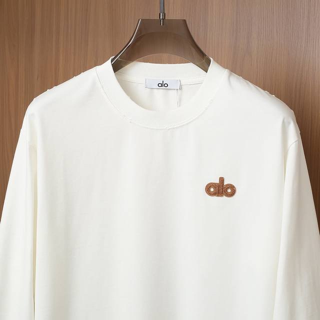 / Alo chest embroidered small label long T Color: Black Fabric: 320G pure cotton p