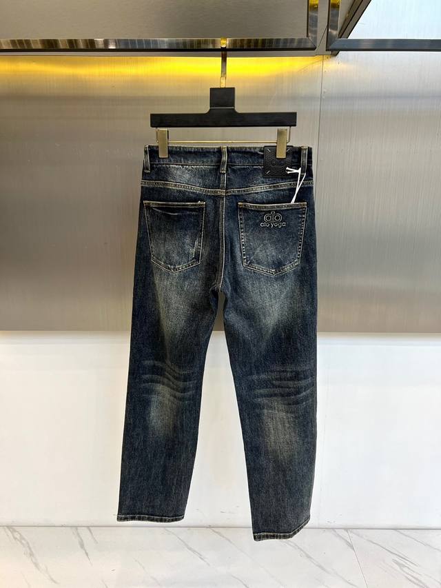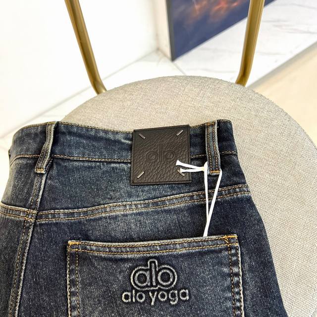 Alo-2025 autumn and winter new dark blue jeans, reshape the modern casual aesthetics with a classic version. The slim cut is matched with precise leg lines, and the back pocket is decorated with the brand's iconic Alo embroidered logo. The simple font highlights the sports fashion gene. Made of high-quality denim fabric, it has good elasticity and durability, ensuring freedom of movement while maintaining a crisp outline. Its style perfectly blends American leisure and sports vitality. The dark blue tone is calm and easy to match. It can be paired with a sweatshirt to interpret street trends, or paired with a sweater to create an everyday look. This pair of jeans has a design that emphasizes both practicality and fashion, making it an indispensable and versatile item in the autumn and winter seasons. 29-36 No 35
