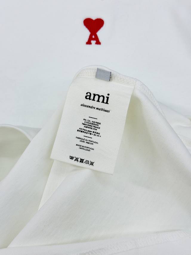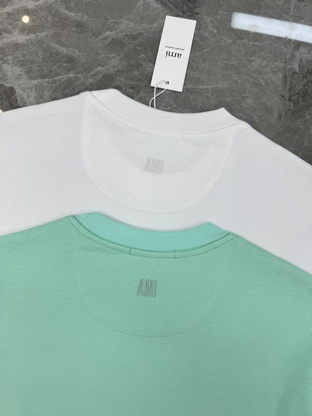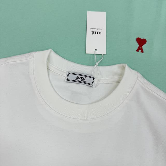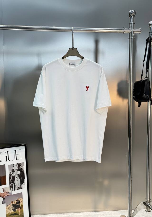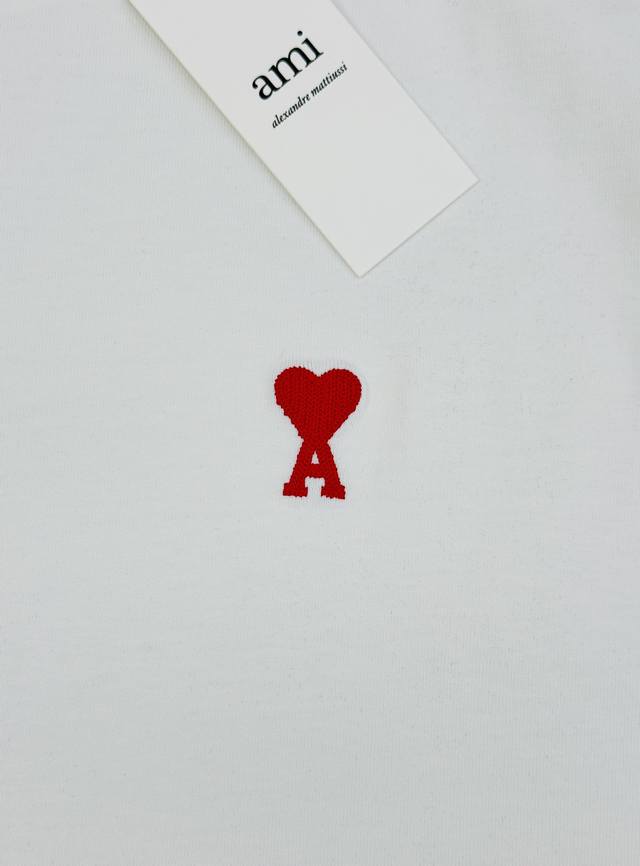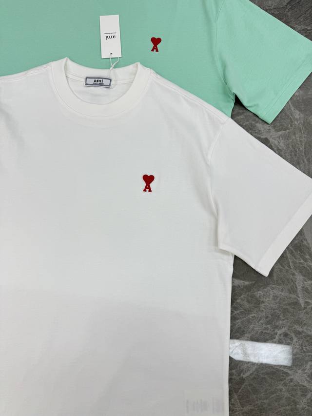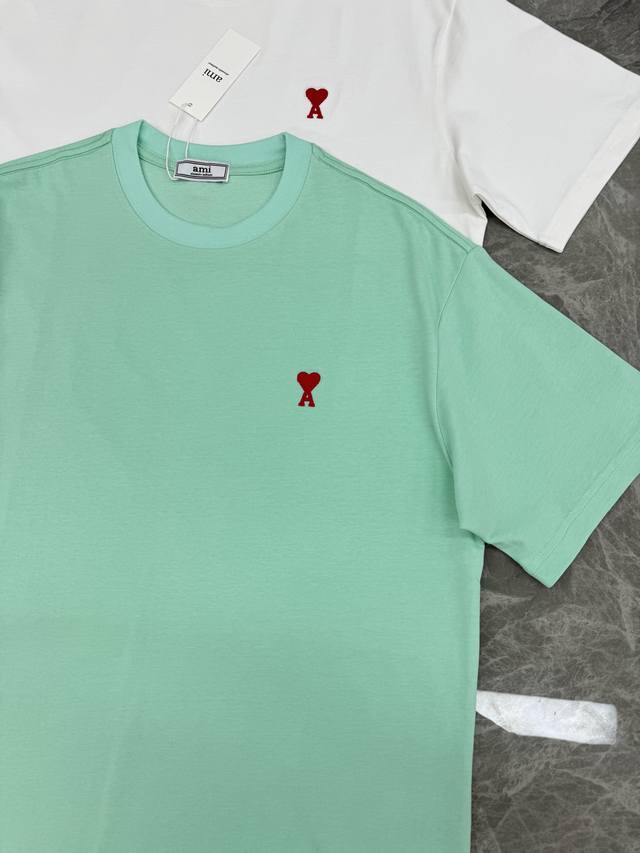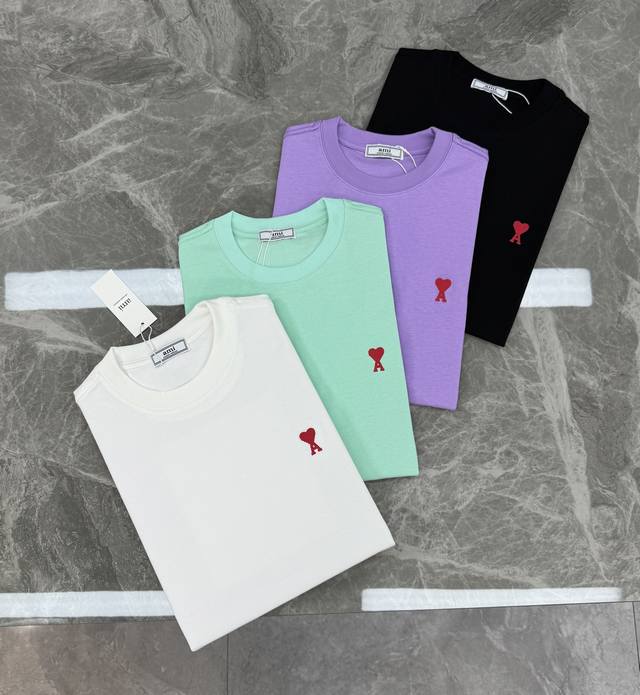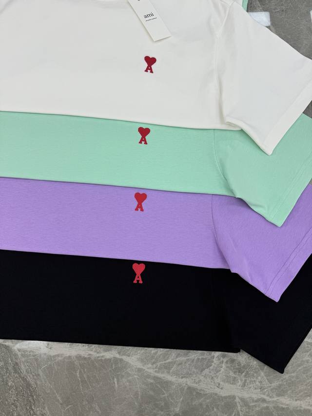 Ami Classic Heart Embroidered Short-Sleeve T-Shirt, unisex, pure cotton. Highly recognizable red heart embroidery on the chest. Colors: Black, Purple, Green, White. European Sizes: S-XL. Recommended size: M (for someone 175cm tall and weighing 145kg).