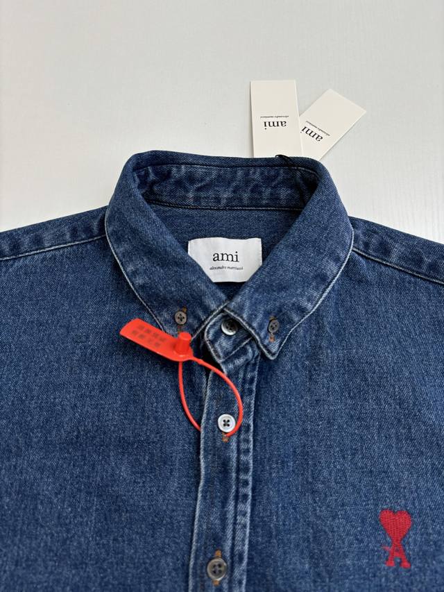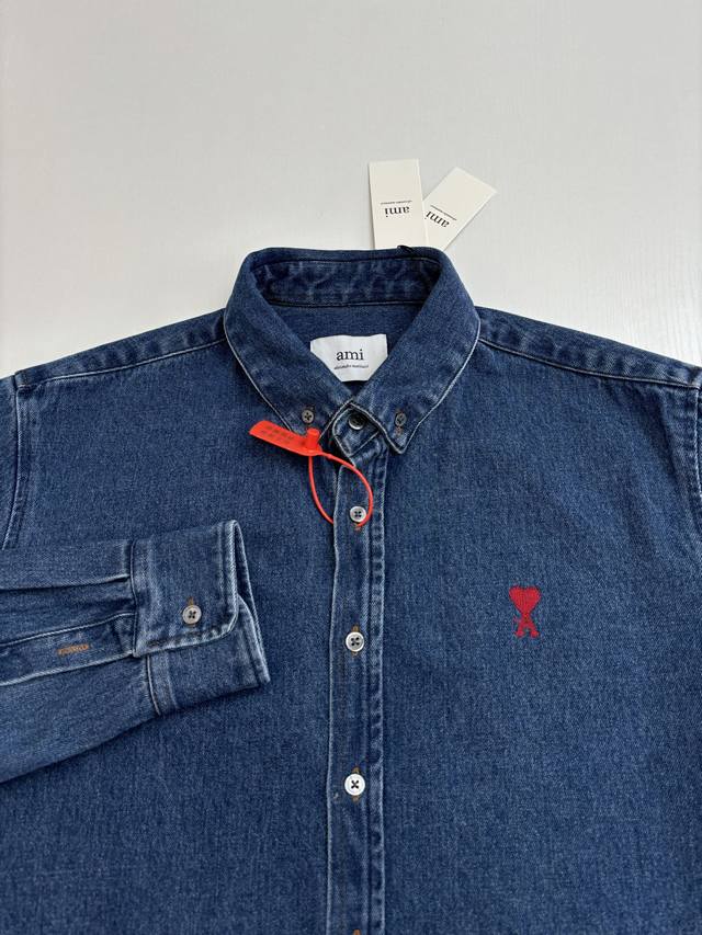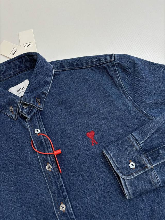 Ami Paris* 25Fw New Denim Shirt Jacket DDD Utilizing imported machine embroidery technology, this jacket employs an advanced computer control system and precision mechanical components to achieve high precision in the Ami heart-shaped embroidery, resulting in smooth and delicate lines. DDD Employing a sandblasting and hand-rubbing technique , the denim surface is treated on a sandblasting machine to create natural fading and wear. Then, using special tools, the surface is physically damaged by hand, maintaining the original texture and details while enhancing its uniqueness. DDD Size: SML XL DDD