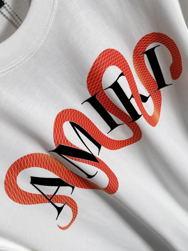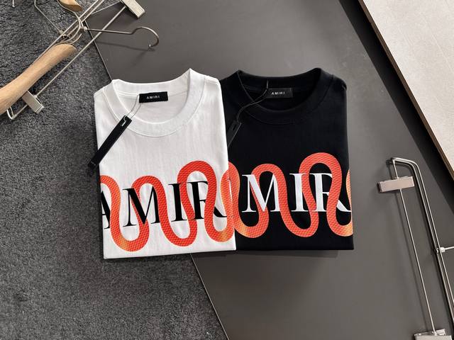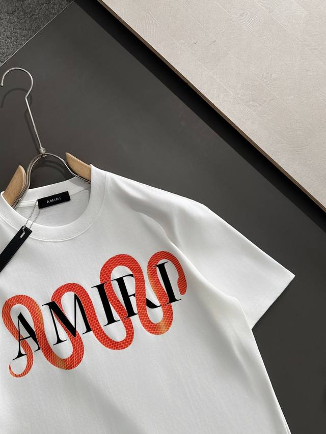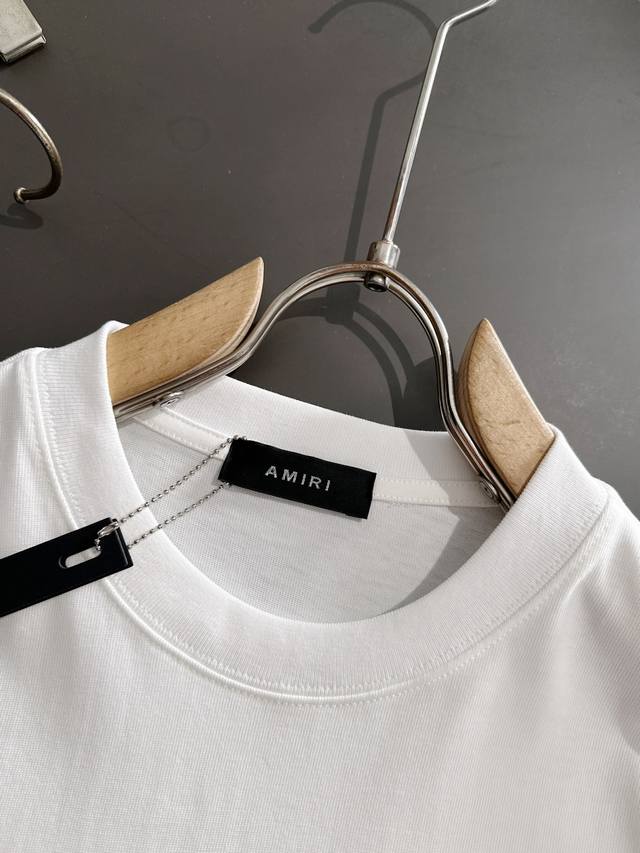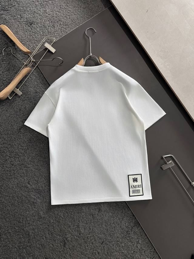 Amiri 2025Ss hot-selling 310G pure cotton double yarn hot-selling spot four seasons series short-sleeved shirt, simple basic wardrobe artifact, casual and versatile must-have style, first-class workmanship and texture, two colors recommended: white and black, exclusive version test, no solution to wear on everyone, size M-3Xl