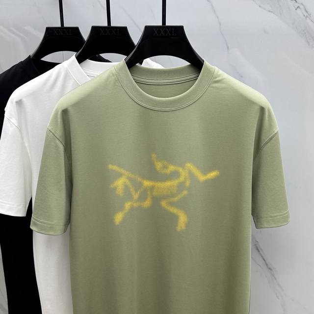 Arc* Arc'teryx 2025 Spring and Summer New Releases, the Latest Short-sleeved Round Neck T-shirt, High-end Custom Design, Avant-garde and Fashionable! Brand Logo Direct Injection Technology Design High-end Custom Mercerized Long-staple Cotton Fabric. Soft to the Touch. Comfortable to Wear. Exquisite Sewing at the Counter Level. Fine Workmanship. The Upper Body Effect is Invincible and Handsome! A Must-Have for Men!