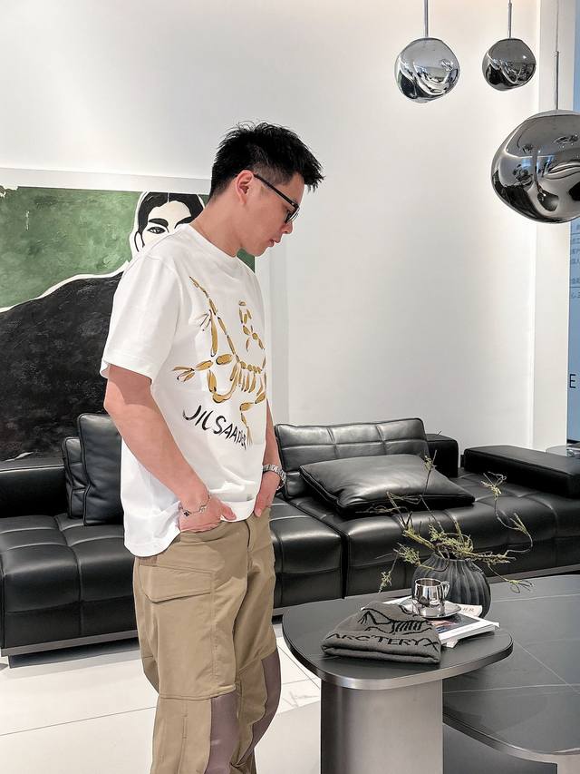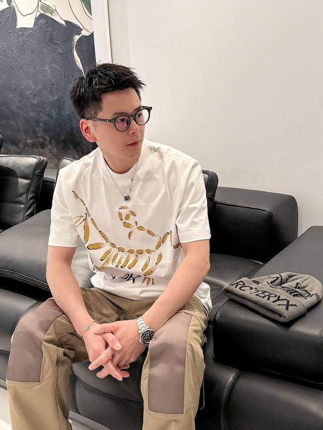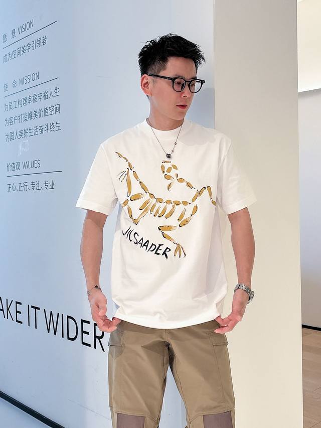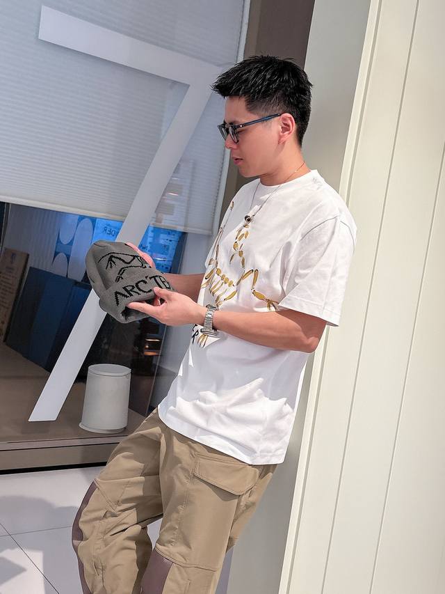 Arc'teryx 2025Ss spring and summer new cotton round neck short-sleeved T-shirt with hand-painted graffiti on the chest. Top-grade mercerized cotton fabric. Custom standard version