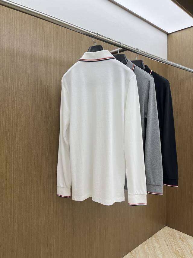 Autumn and Winter Mon 2540 Autumn and Winter new original men's lapel long-sleeved polo shirt, high-end custom fashion and versatile, sold at the counter simultaneously. The three-dimensional embroidered logo on the chest is customized and imported from pure cotton fabric, which is soft, skin-friendly and comfortable to wear. It feels very delicate. The lining is made of single-needle lockstitch technology! It can ensure that it will not lose its shape when worn! The tailoring is appropriate, and there is no sense of restraint. The factory p is finely crafted, showing temperament and class. The upper body is handsome and stylish. Size: M-4Xl The largest size can wear about 200 pounds. Please state your height and weight