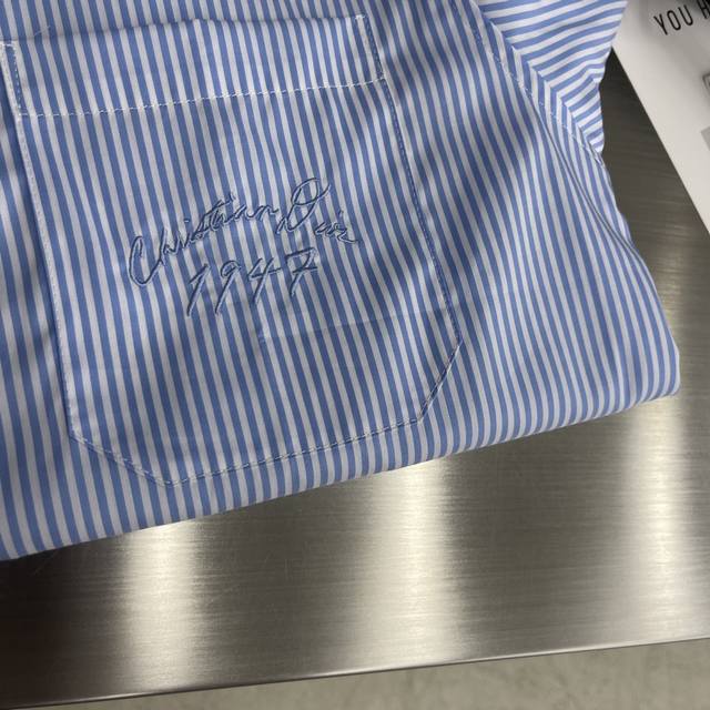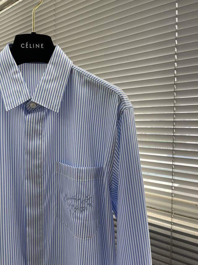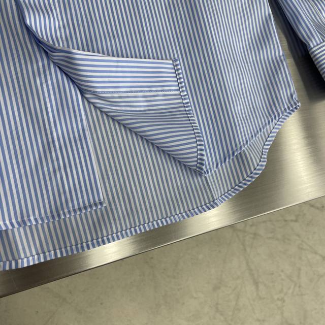 -Dio striped pocket embroidered logo cotton poplin shirt.
