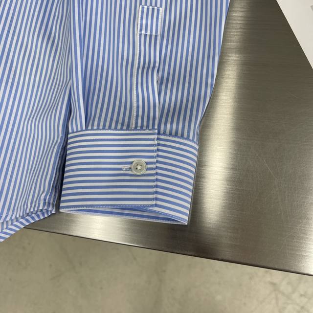 Concealed buttoning with logo shell buttons, the fabric is high-quality and comfortable and breathable.