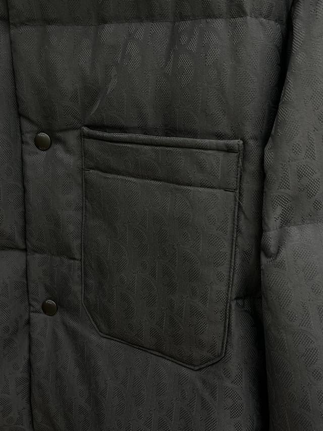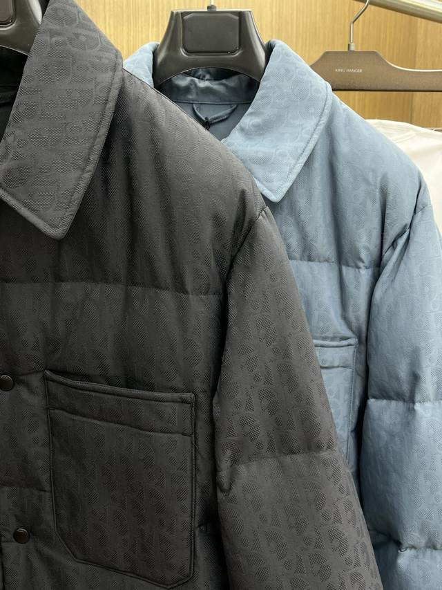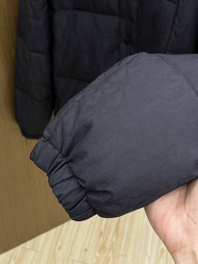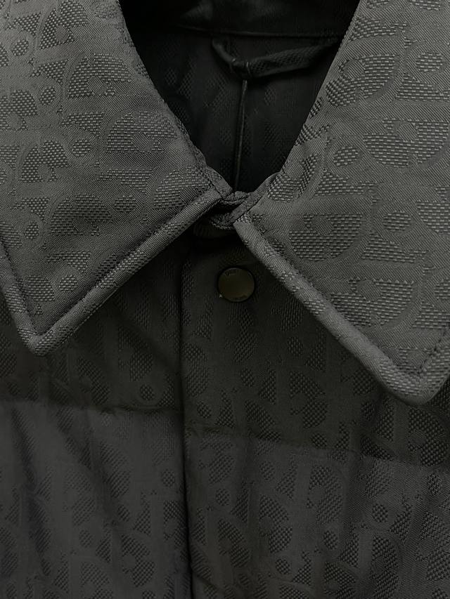 Autumn/Winter Down Jacket DDD Di*R 25Fw New Printed Down Jacket with Premium Dust Bag DDD Fabric uses advanced jacquard technology: Laser jacquard technology is applied to the fabric, giving the entire garment a textured and three-dimensional look. This technology not only enhances the visual effect of the fabric but also improves its durability and comfort. DDD Three-proof treatment: Custom-woven high-density satin nylon material combined with a subtle jacquard weave gives the down extremely high waterproof, stain-resistant, and dustproof properties. This ensures that it maintains a good appearance and performance even in harsh weather. DDD Printing process: Oblique printing is applied to the fabric using precise printing technology, blending perfectly with the fabric to present a low-key yet luxurious visual effect. DDD Down filling: High-quality 90% white duck down is selected as the filling material, undergoing strict processing and selection to ensure the down's loft and warmth. The down is evenly filled into the inner lining and fixed by sewing and sealing. DDD Detail Processing: Fine details are applied to the collar, cuffs, and hem to enhance both practicality and aesthetics. Additionally, ironing and inspection are performed to ensure product quality meets standards. DDD Black, unisex! DDD Size: 46-52 DDD