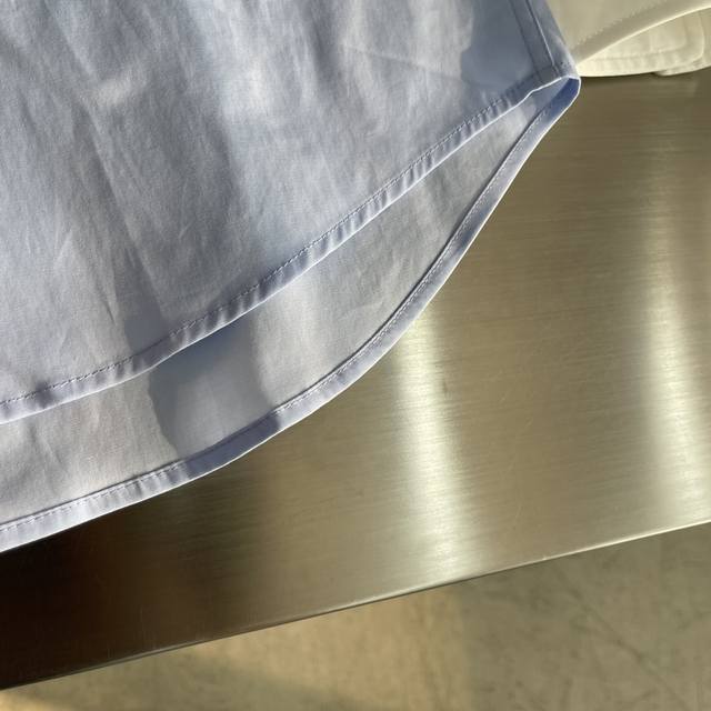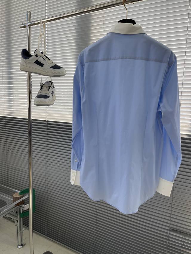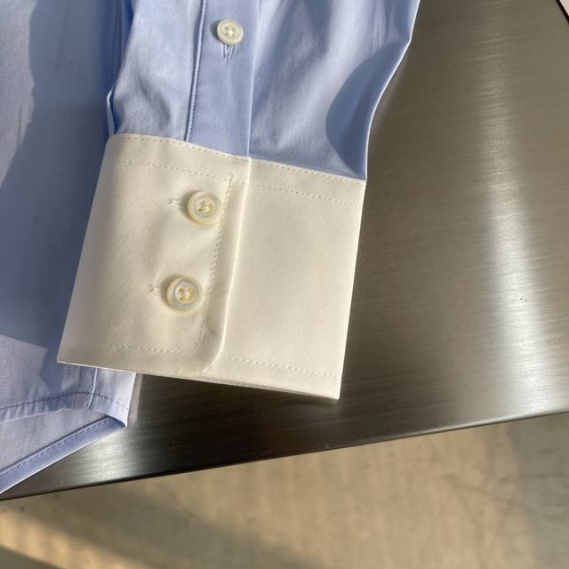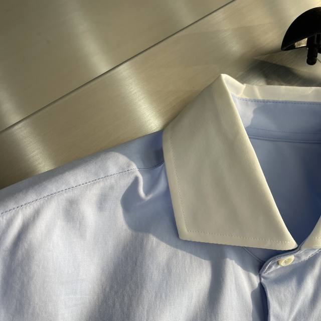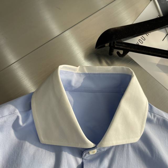 -prad poplin stretch shirt with contrasting collar detail. This button-down style features stretch fabric for comfort!