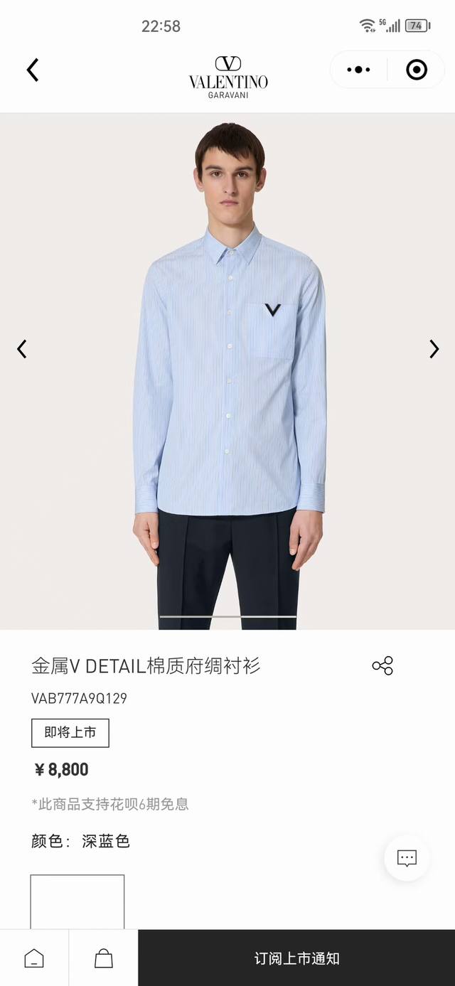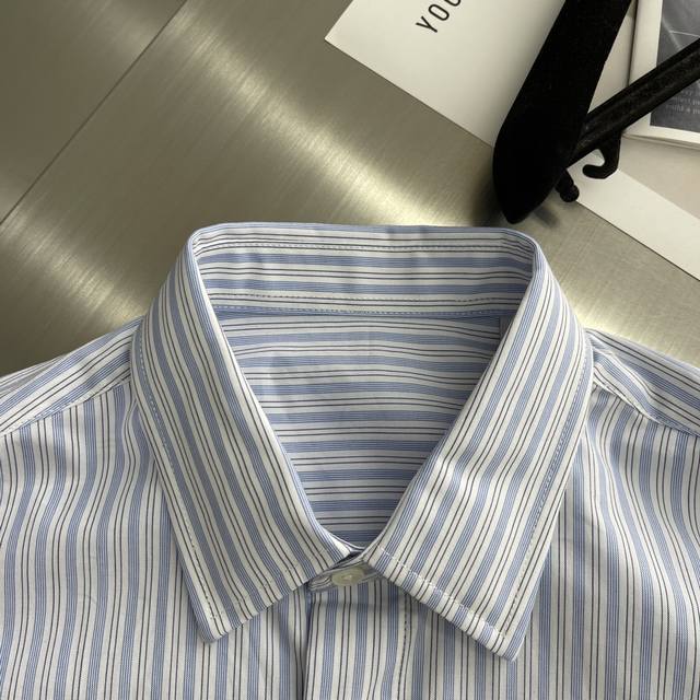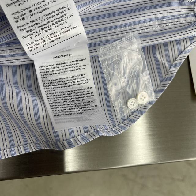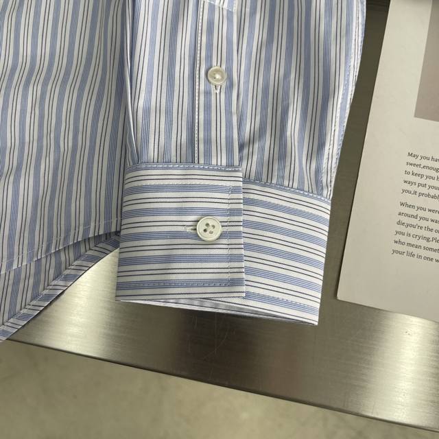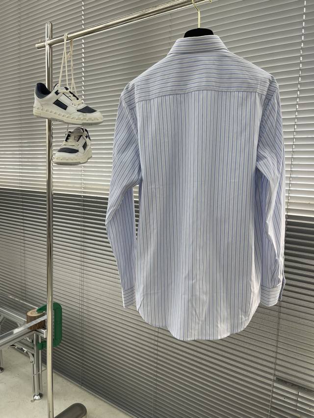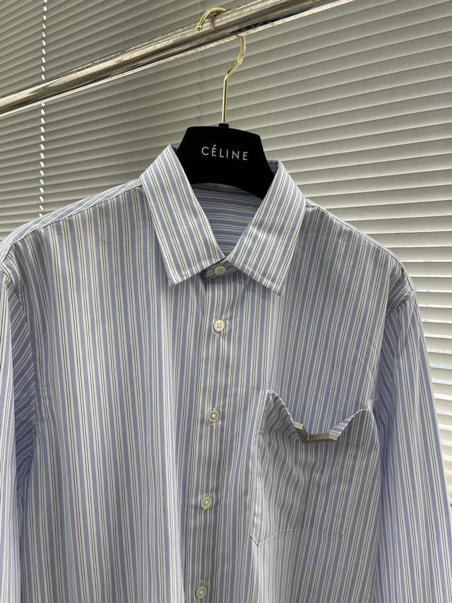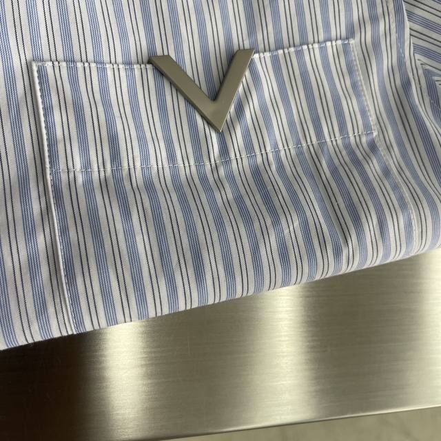 Autumn/Winter -Vltn striped logo metal V detail cotton poplin shirt. Concealed