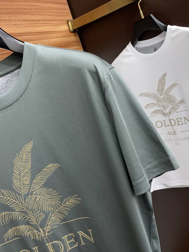 Bc 25Ss Spring/Summer new double-sided mercerized cotton round neck short-sleeved men's basic counter-printed short-sleeved T-shirt! Available now through trading channels and simultaneously on the official website! This simple yet stylish piece has been a favorite among fashionistas and those seeking quality since its launch! Made from custom-made acetate silk, this specially processed material not only ensures breathability and comfort, but also delivers an exquisitely smooth feel with every touch, evoking a summer breeze and refreshing comfort. The designer has cleverly incorporated a classic emblem embroidery element into the hem, and every stitch and thread reveals the craftsman's exquisite craftsmanship and meticulous attention to detail. The basic yet stylish straight-tube round neck design retains the casualness of a T-shirt, while the three-dimensional cutting process makes the clothes fit the body shape without being tight. Whether it is daily leisure or a relaxed party, it can be easily controlled, showing the wearer's confidence and style. Size: 48-56