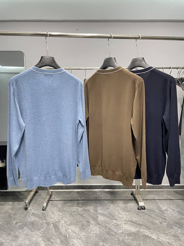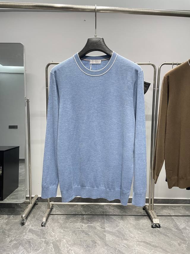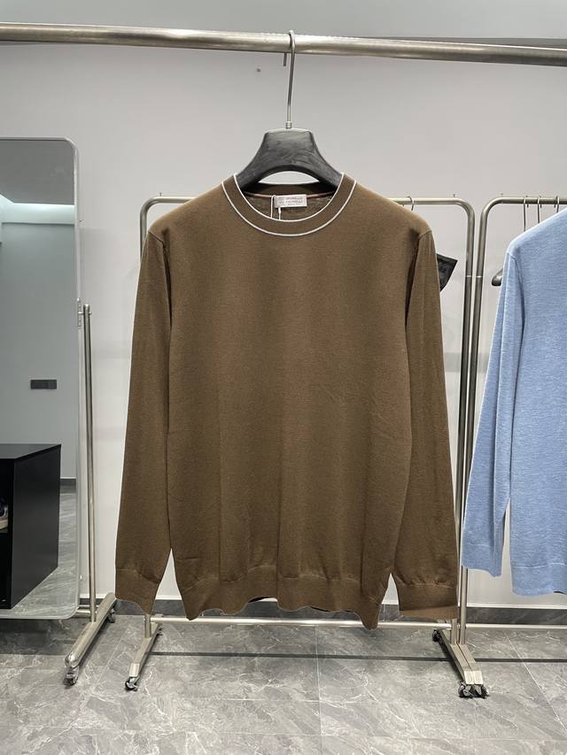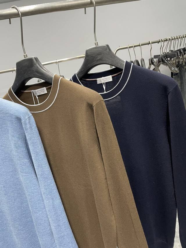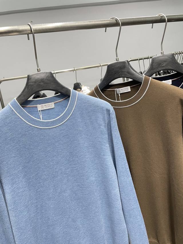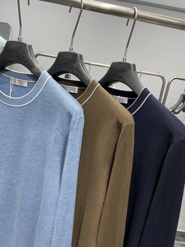 Bc25Fw's new autumn/winter silk and wool blend solid color knitted crewneck sweater. This men's basic casual pullover sweater features contrasting cuffs with intarsia patterns! Available now through trading channels and on the official website! Bc's new autumn/winter 25th edition base layer sweater showcases the brand's commitment to quality and style, from the fabric selection and craftsmanship to the design and detailing. This sweater is made from custom-supplied silk and wool blend yarn: 5% silk + 5% wool + 8% acrylic + 30% super soft fiber + 40% polyester. Woven using imported machinery using an ultra-fine weaving process, the fabric feels light, silky, and incredibly soft against the skin, while also providing warmth. The solid color throughout creates a simple yet stylish look, while the contrasting color at the neckline adds a touch of flair and uniqueness, enhancing the overall quality and style. In terms of pattern design, this sweater adopts a basic conventional round neck pattern design. This pattern not only meets the needs of men's daily commuting, but also can show men's elegant and confident temperament!