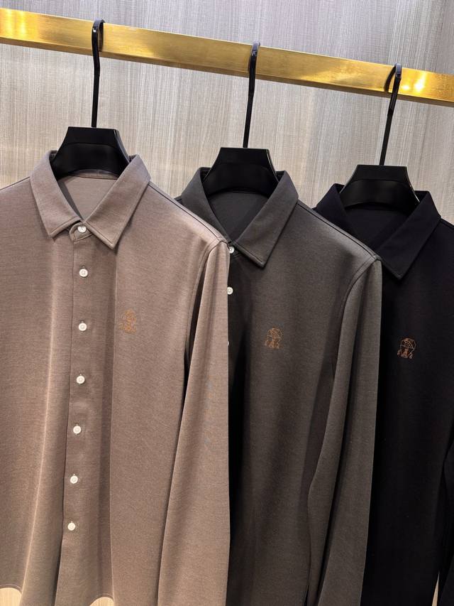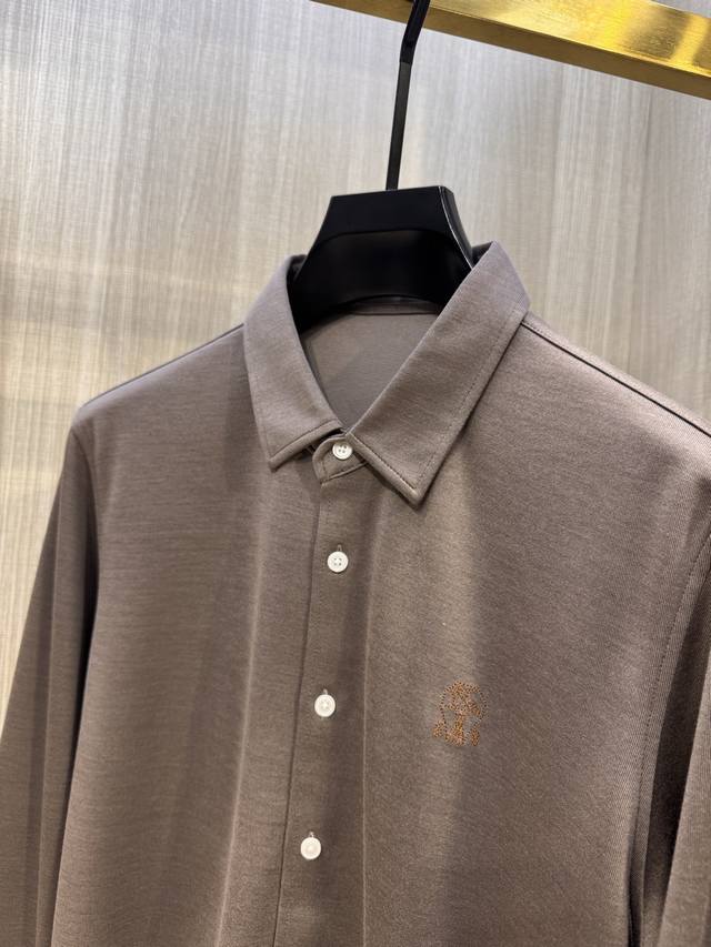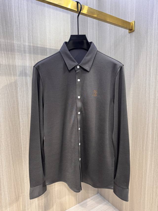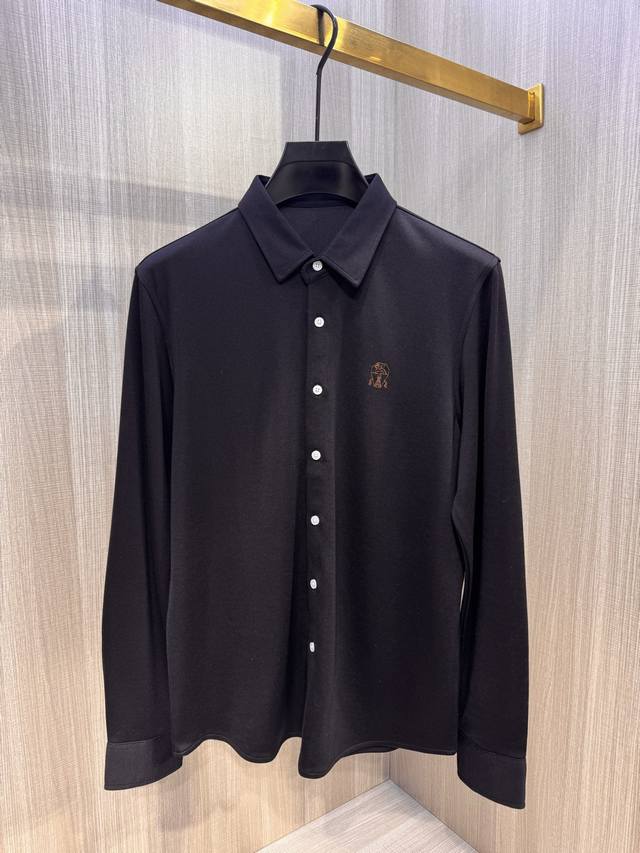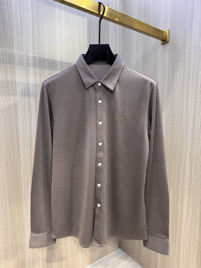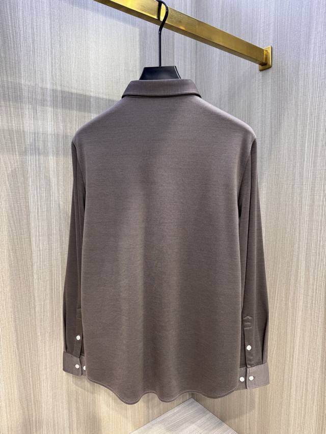 BC's latest Autumn/Winter 2025 men's wool long-sleeved shirt with embroidered logo. This simple and versatile style is perfect for everyone. The iconic Castle Pegasus logo is embroidered on the chest, and the new contrasting color logo further distinguishes the brand. Continuing BC's signature understated, luxurious, and timeless style, this sophisticated and refined workmanship embodies high-end fashion standards, showcasing a refined, minimalist aesthetic. The 360-degree, three-dimensional silhouette creates a sleek, perfectly contoured silhouette. The pointed collar creates a gentlemanly look, creating a striking aesthetic that effortlessly complements both business and casual wear. This versatile must-have for BRB's elite men! Made from custom-woven fabric: 25% wool, 58% Tencel, 15% viscose, and 2% spandex. This shirt has a subtle velvety feel, a crisp, rich texture, and a soft, delicate hand. It's incredibly comfortable next to the skin, offering excellent warmth and abrasion and wrinkle resistance.